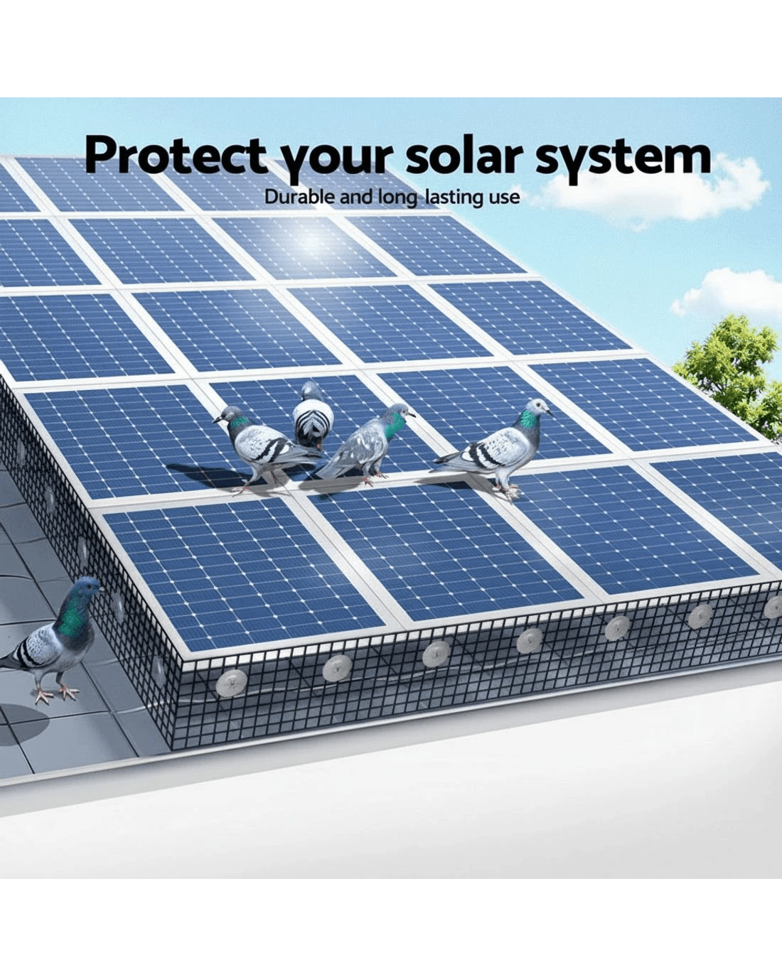 Protect your valuable solar panels and prevent costly damage with our Solar Panel Bird Guard Mesh Critter Guard Roll Kit. This all-in-one solution is expertly designed to keep birds, squirrels, and other unwanted pests from nesting under your solar array. By creating a physical barrier, our kit ensures your system operates at peak efficiency and avoids potential fire hazards.