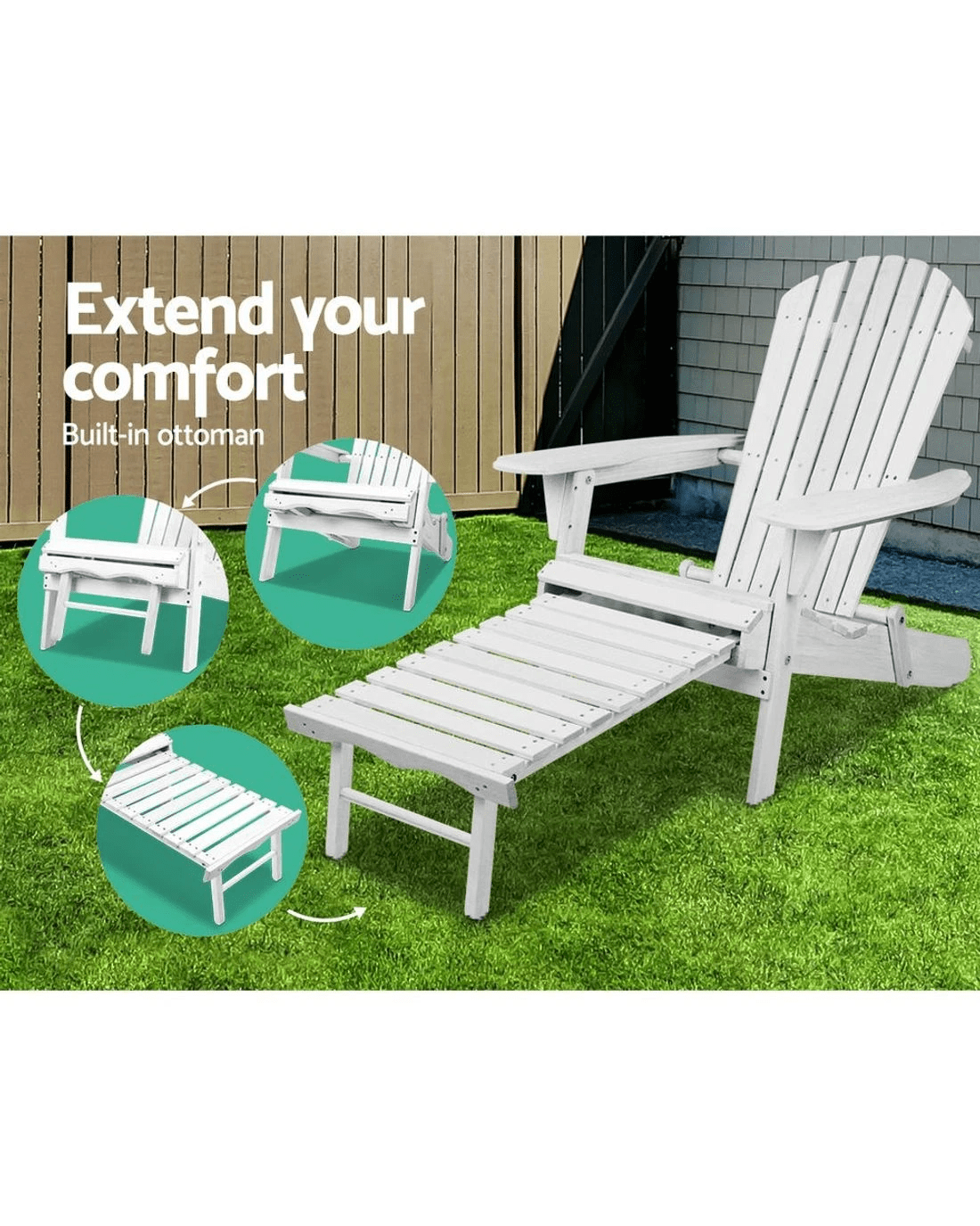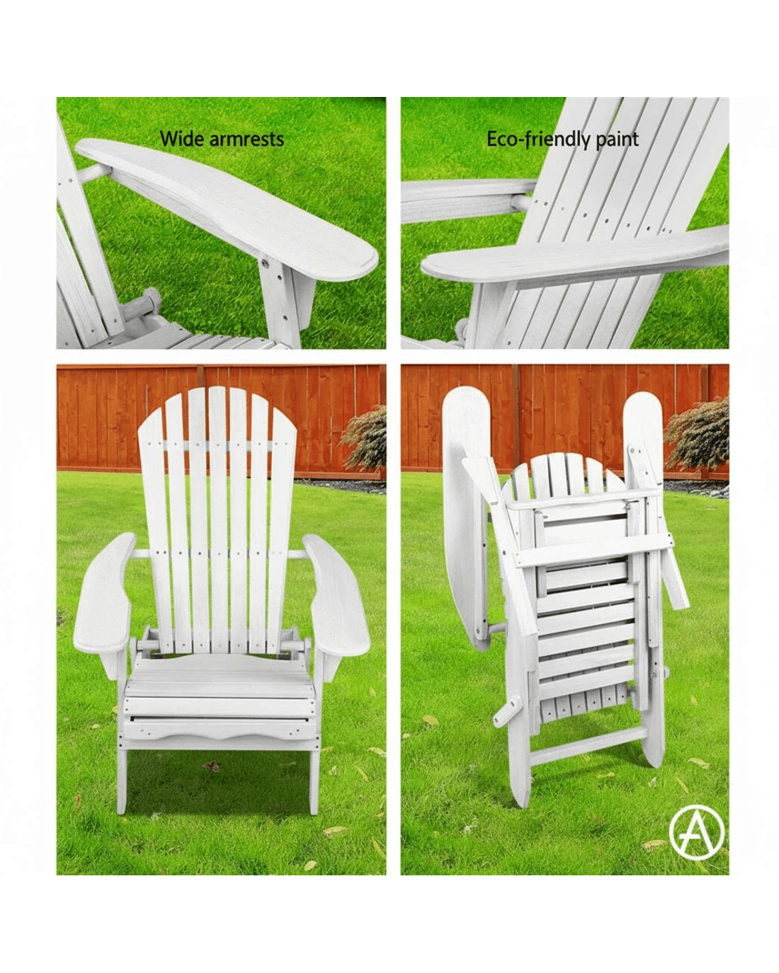 Gardeon 2PC Adirondack Outdoor Chairs Wood Foldable Sun Lounge Patio - White