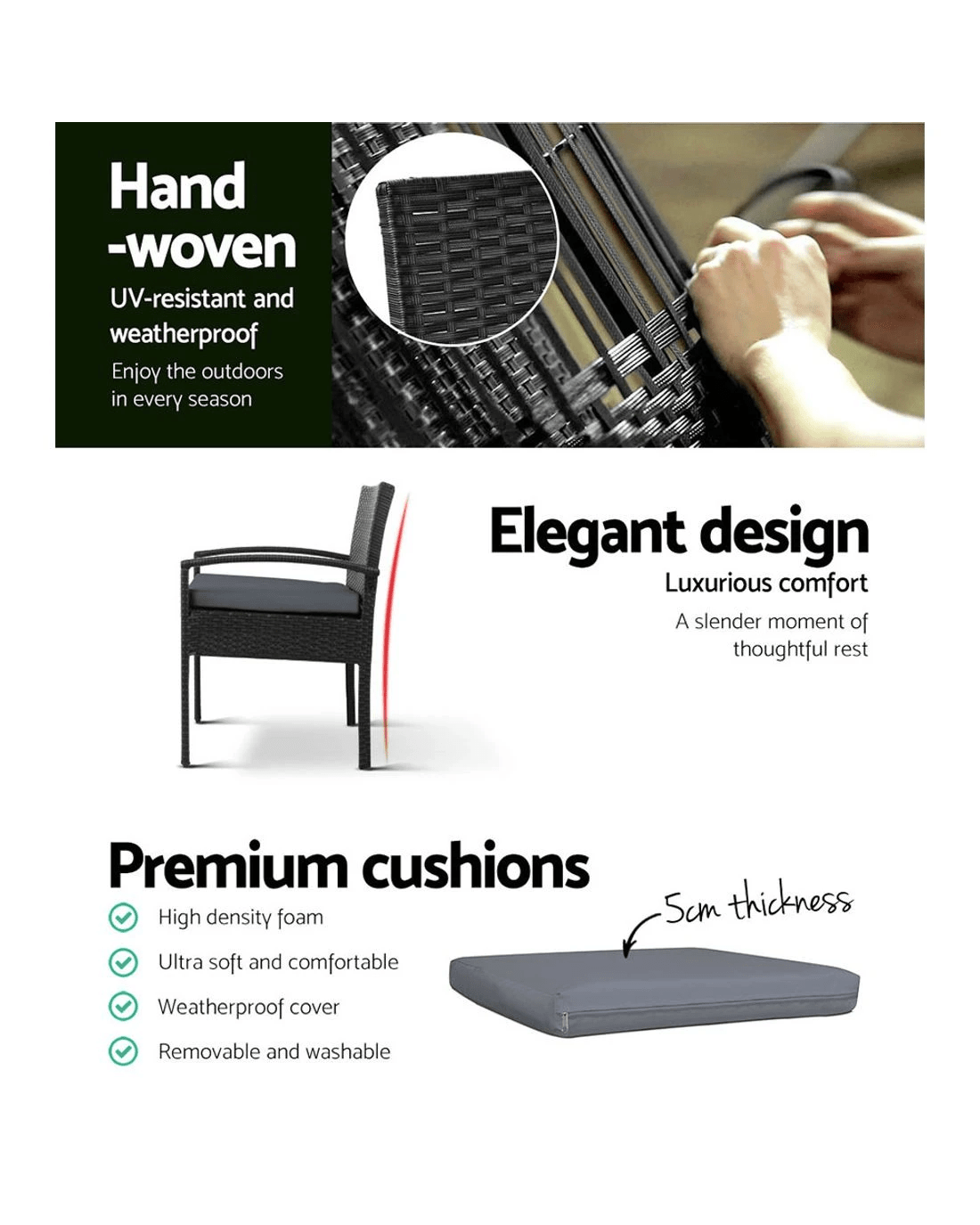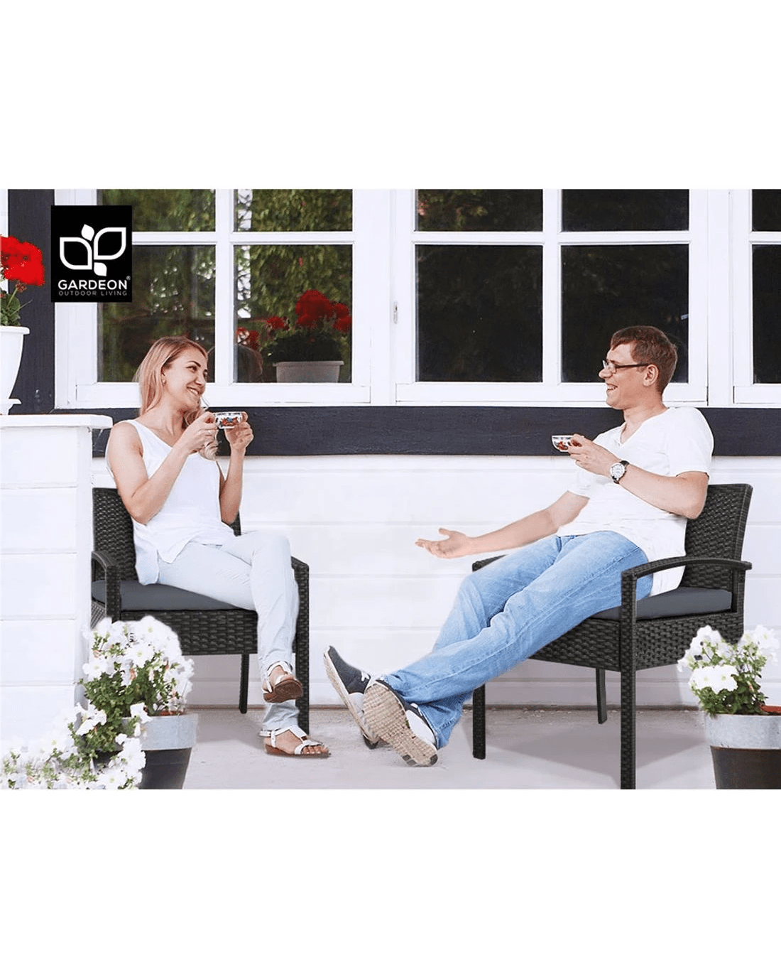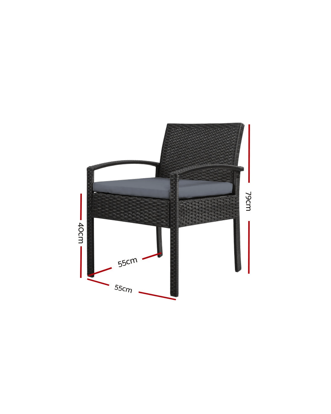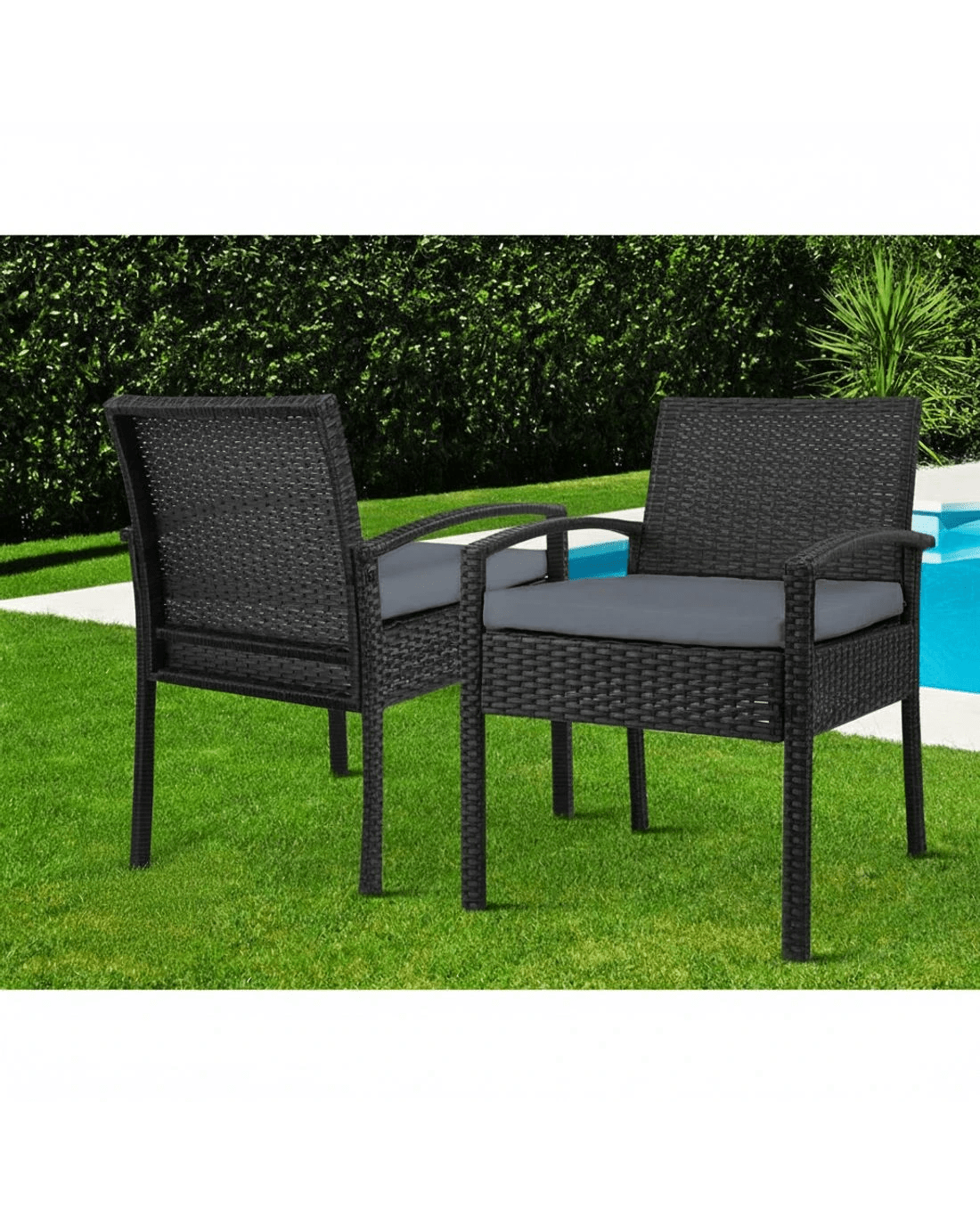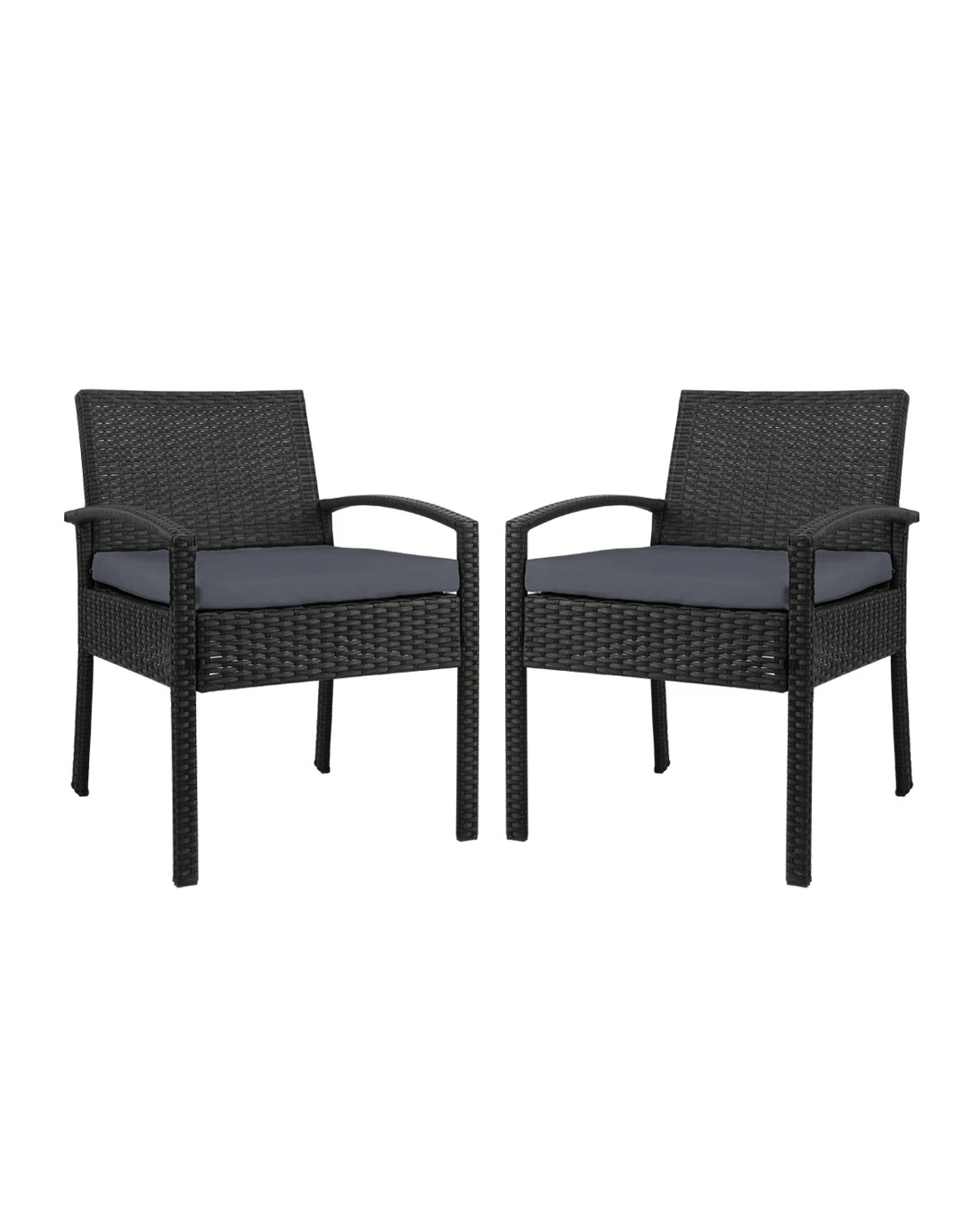 Gardeon 2PC Outdoor Dining Chairs Patio Furniture Rattan Lounge Chair Cushion - Black