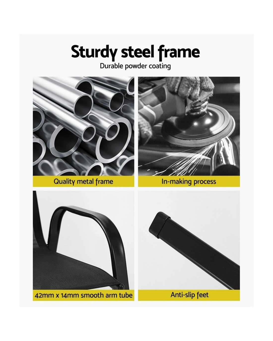 Whether you're hosting an outdoor intimate dinner party or barbeque night for your friends or family, the Gardeon outdoor stackable chair set is perfect to design a gorgeous outdoor setting that will wow your guests. The chairs are stackable, which makes for convenient and easy storage when not required. Designed for years of enjoyment, the chair set boasts classic looks and are made from premium textilene fabric and sturdy metal frame with durable powder coating. The anti-slip feet and good weather-resistance also makes them quite desirable. You can also pair this chair set with our sturdy and beautiful matching table to create a harmonious look.