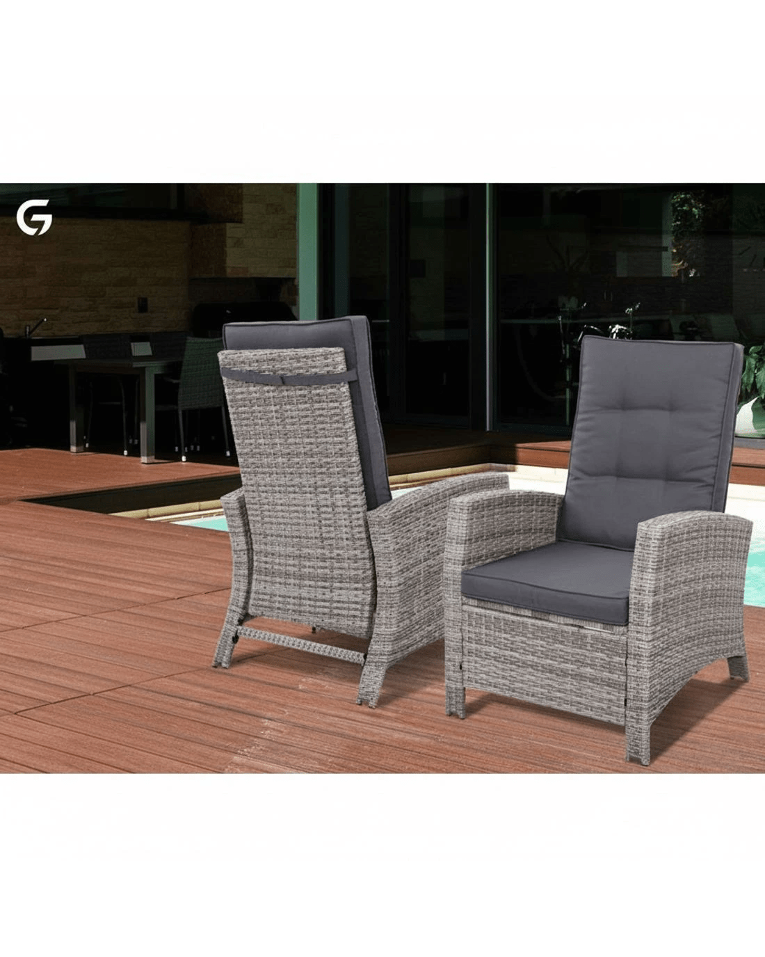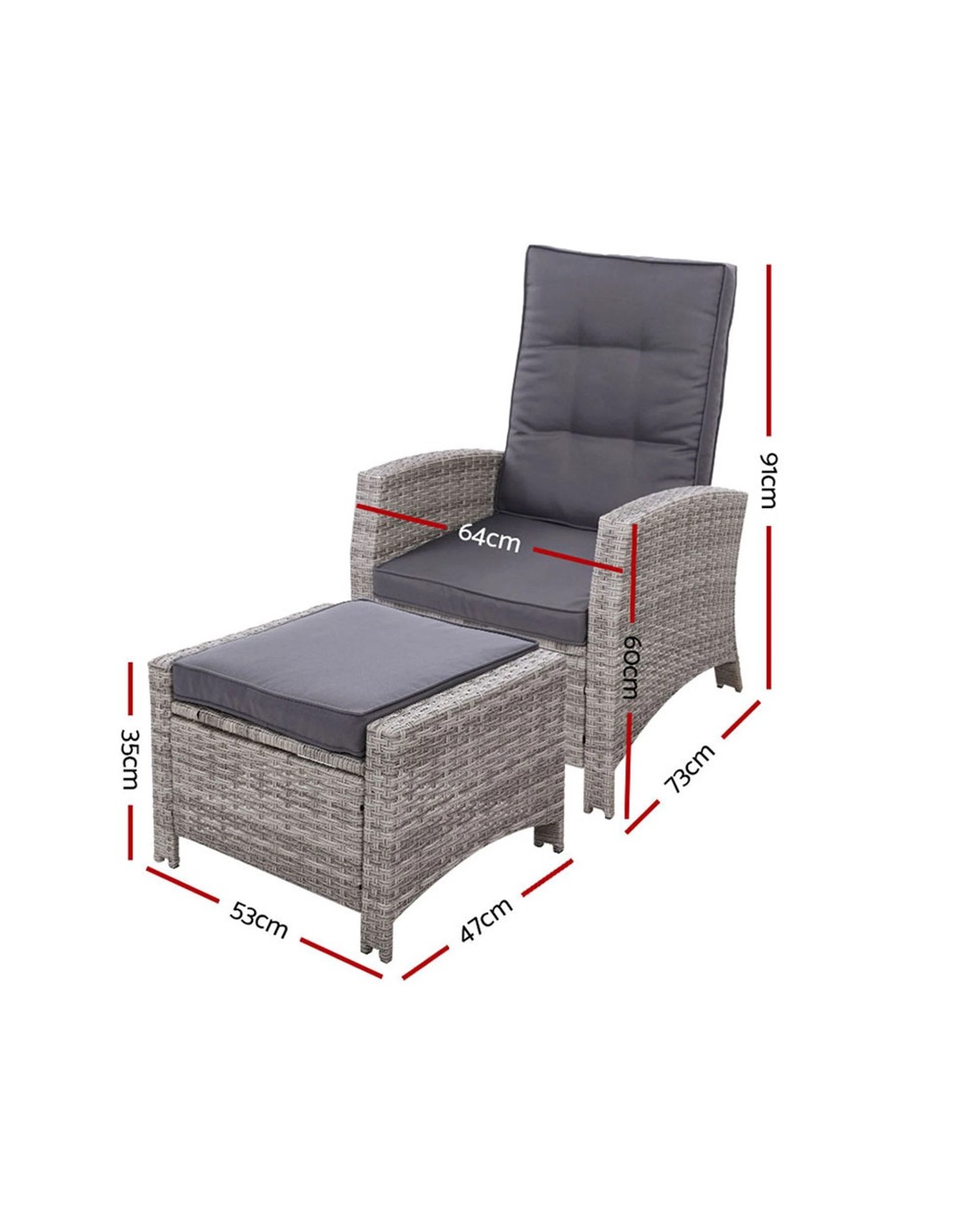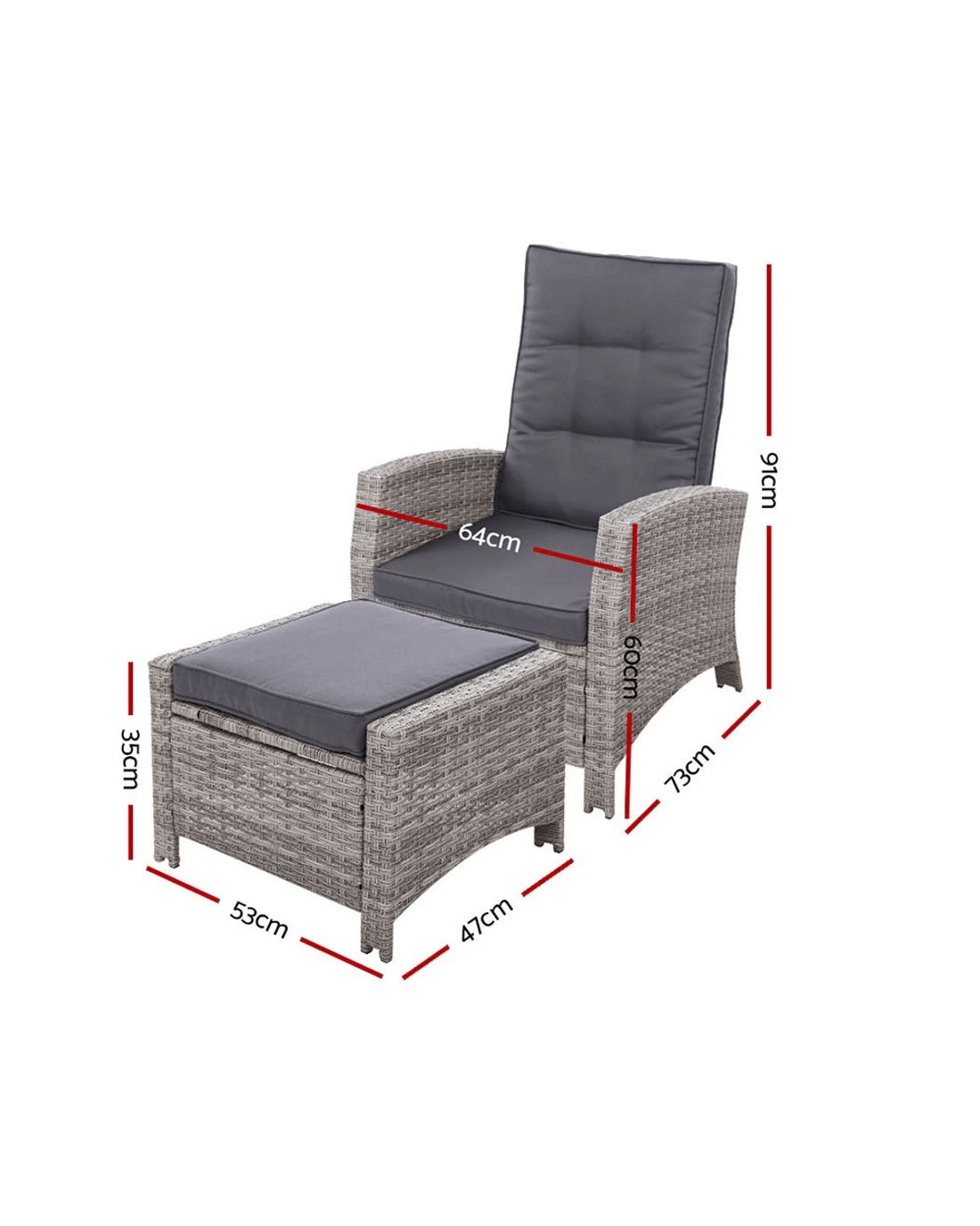 Now you can really sit back and chill in the outdoors with the Gardeon Wicker Recliner Set. Comprising an oversized recliner and matching ottoman, the outdoor ensemble is everything you need for relaxation in elegant wicker style. The set is made of UV-resistant and weather-resistant PE wicker so that you never have to worry about rust, corrosion or weathering issues. The heavy-duty steel frame, also wrapped in wicker, is sturdy and hardy and will stand up to robust use easily. More importantly, the recliner has five inclination settings, from 110°to 160°, to suit your angle of rest. Better still, the seat cushion is made of high-density foam for ultra comfort while the zipped seat cover is removable and washable. Not least, the useful ottoman is just perfect for putting your feet up. Yes, it is indeed paradise under the sun, moon and stars. Have it outdoors or indoors, the wicker recliner set is equally at home with its exquisite design and unique presence for any home decor enthusiast.