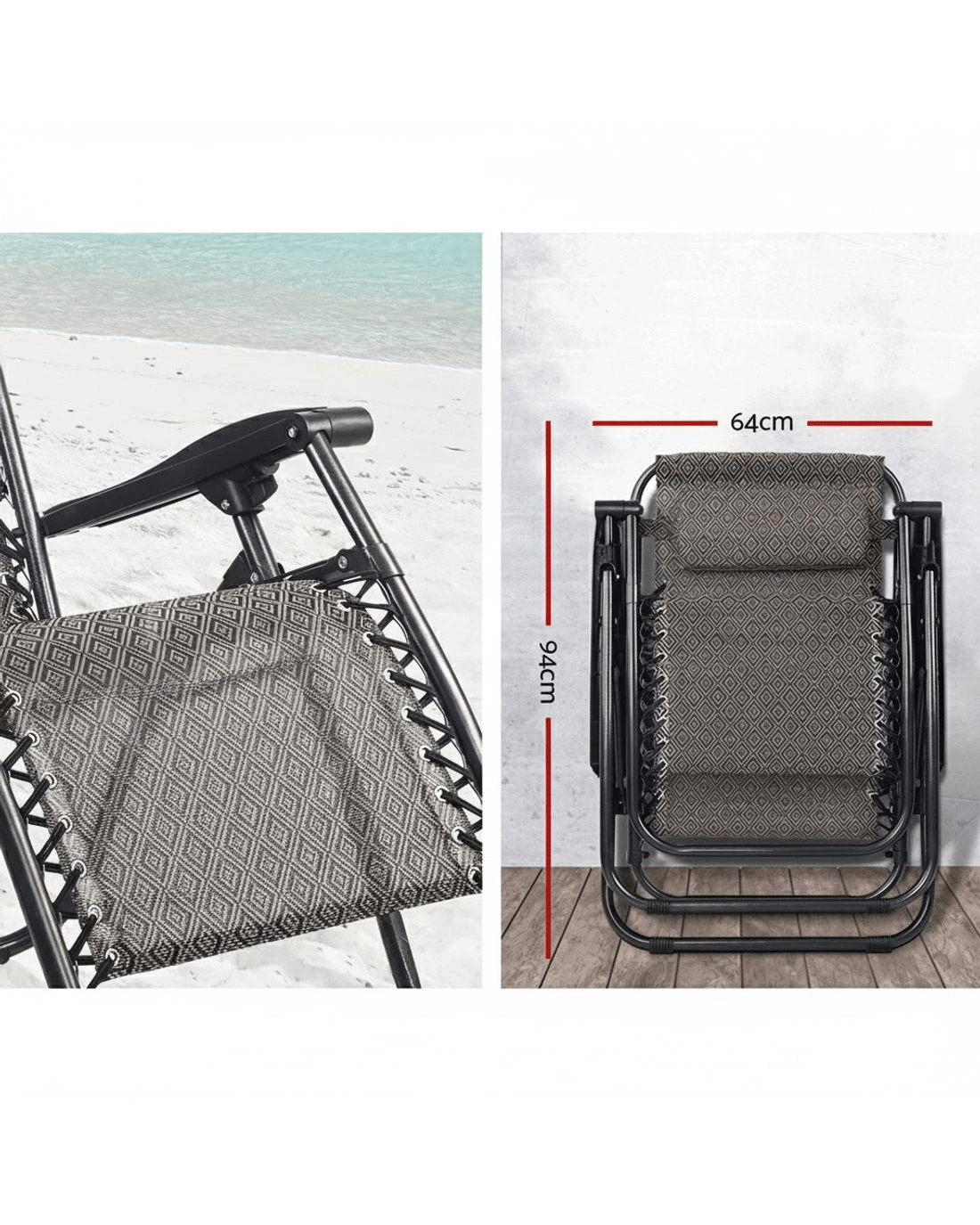 Gardeon 2PC Zero Gravity Chair Folding Outdoor Recliner Adjustable Sun Lounge Camping - White