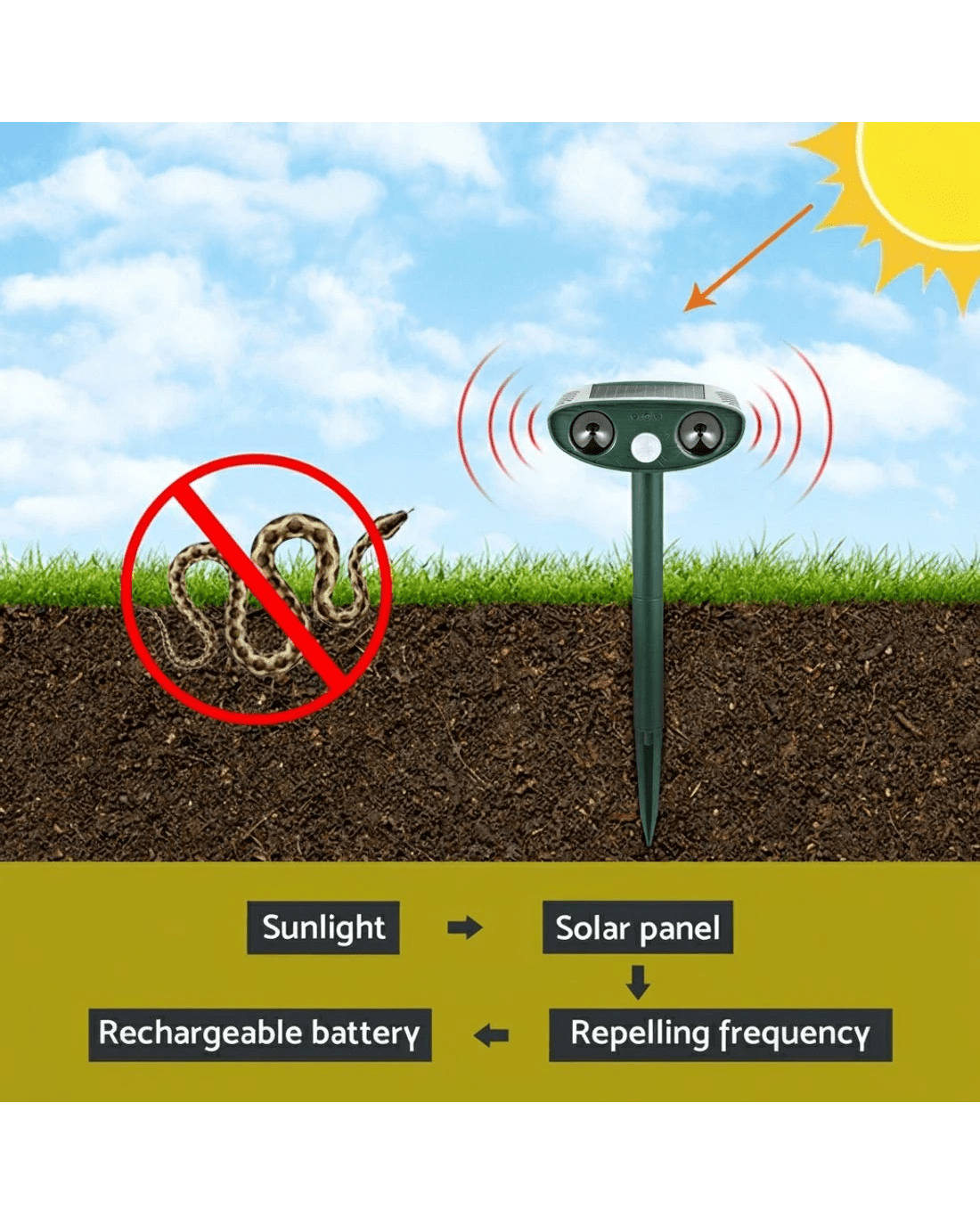 Gardeon 2PCS Solar Snake Repeller LED Ultrasonic Battery Powered - Green
