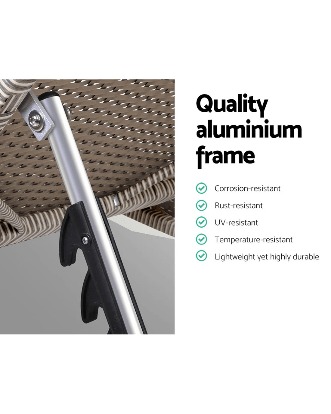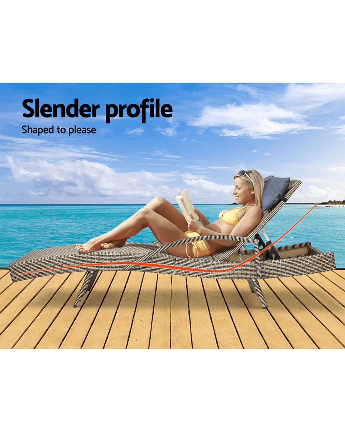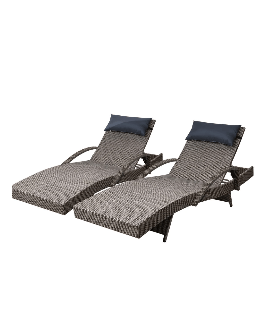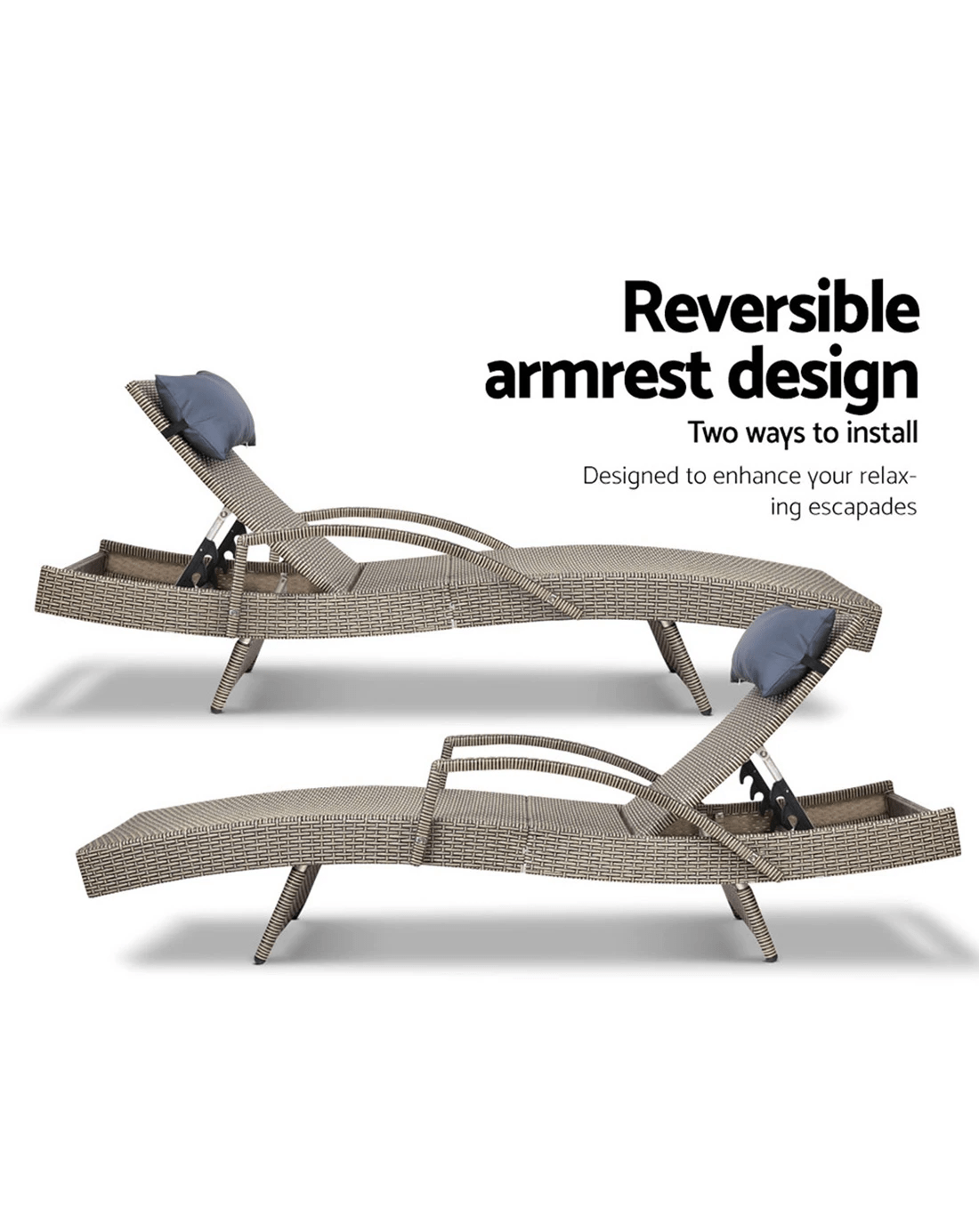 Gardeon 2x Sun Lounge Wicker Lounger Outdoor Furniture Beach Armchair - Grey