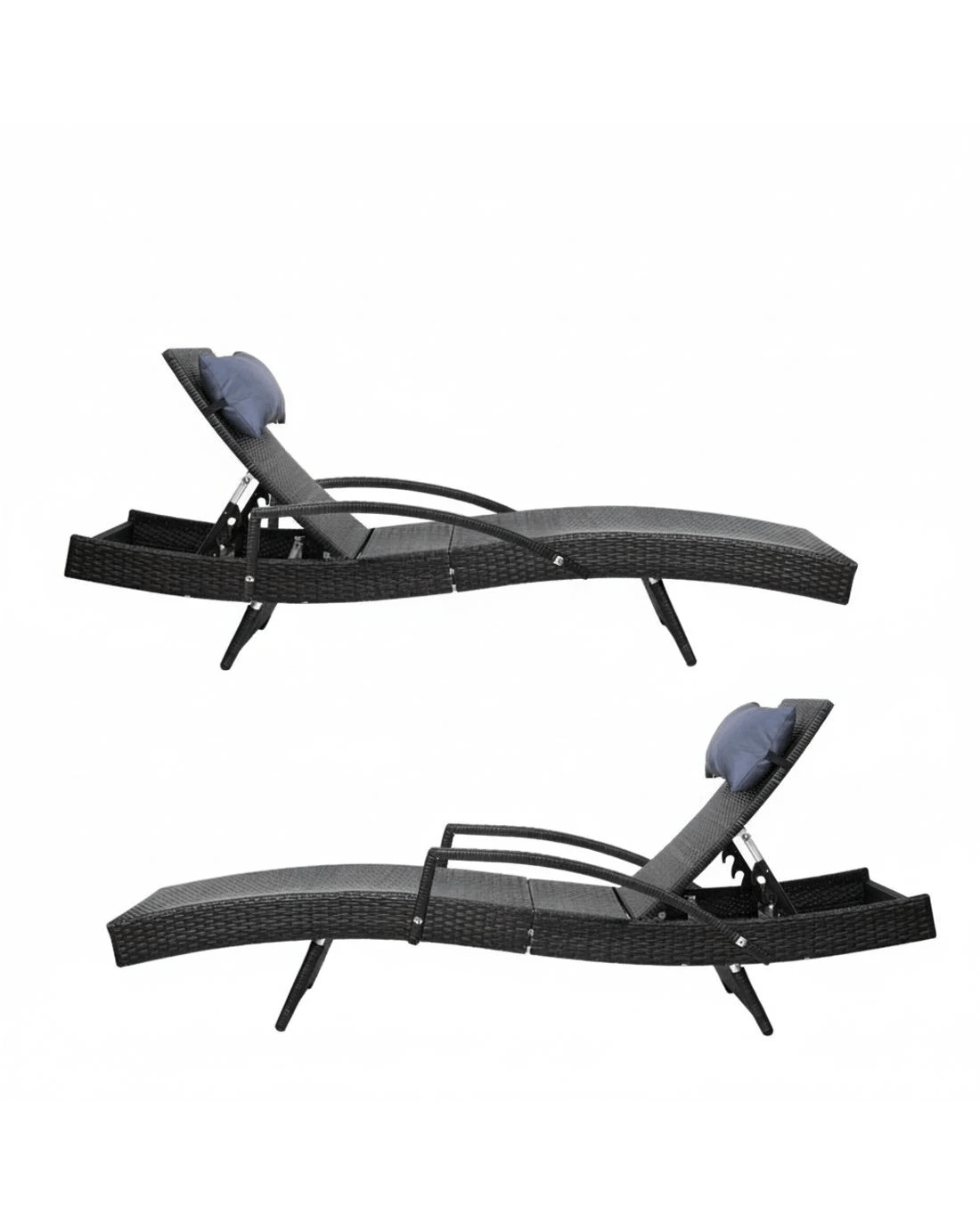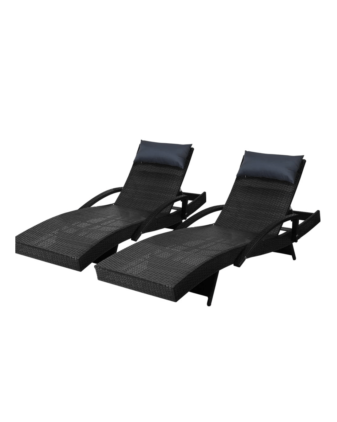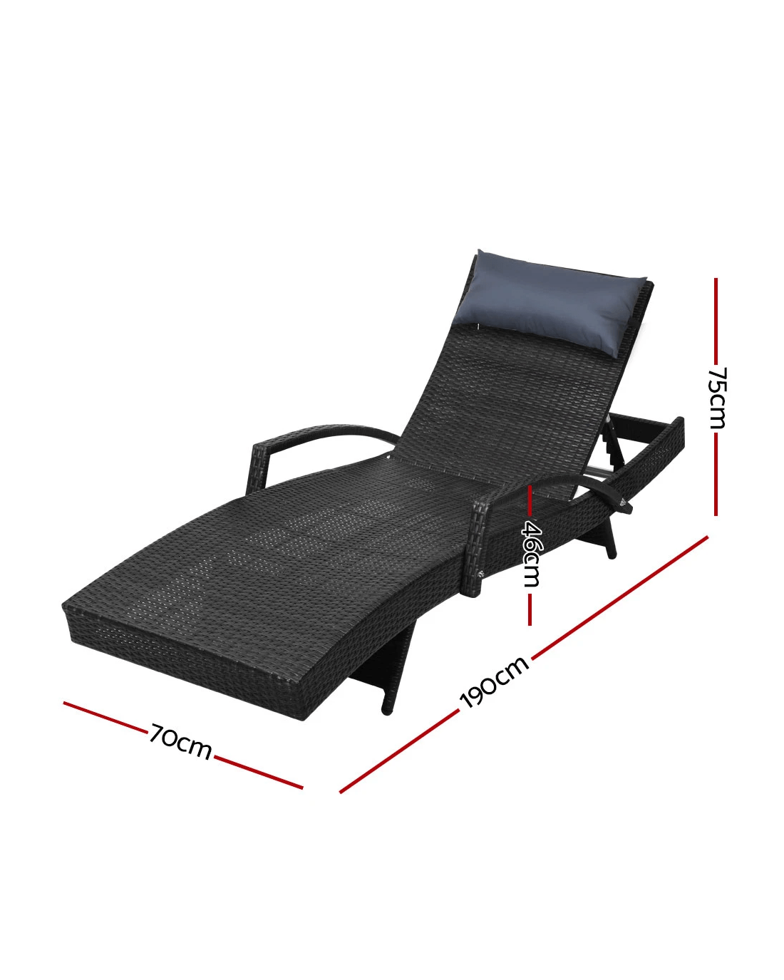 Gardeon 2x Sun Lounge Wicker Lounger Outdoor Furniture Beach Chair Armrest - Black