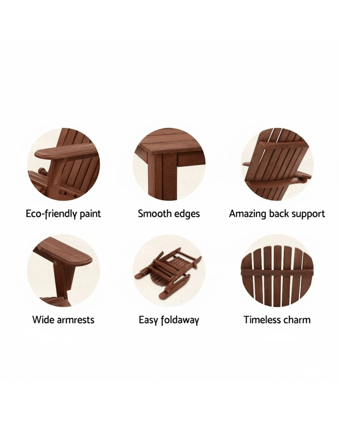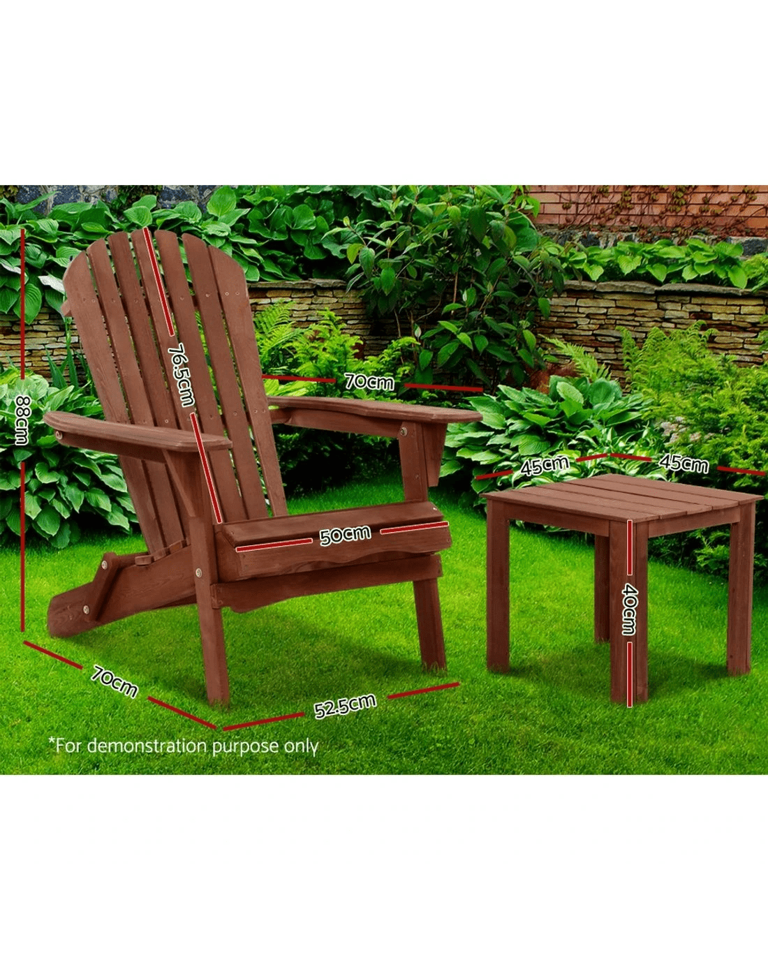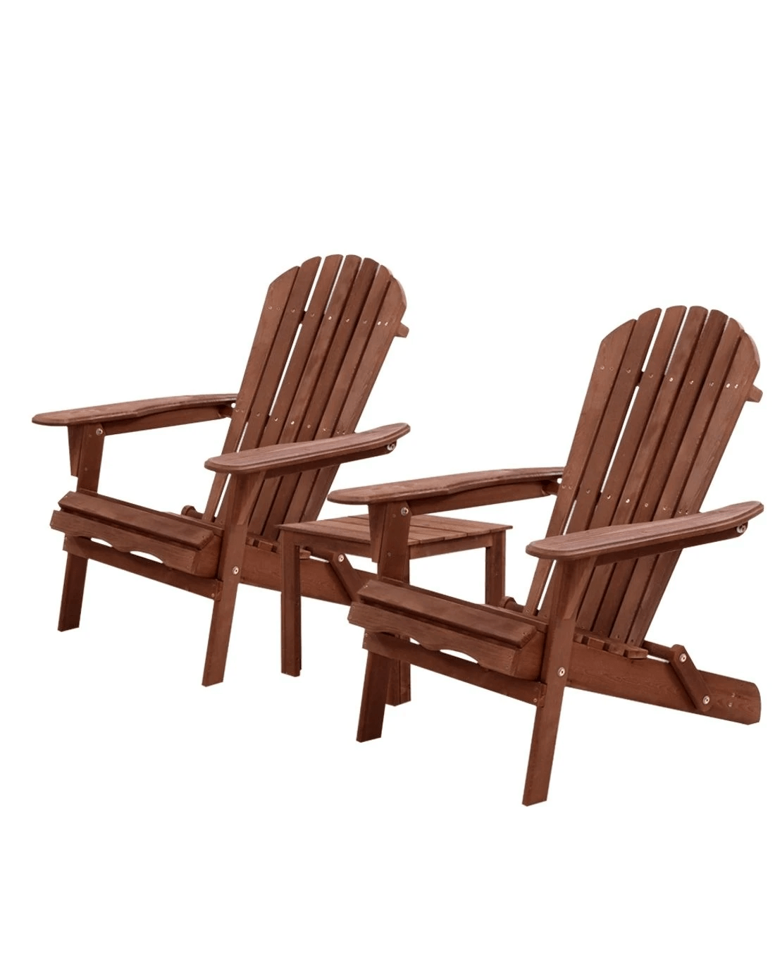 Gardeon 3 Piece Adirondack Chair and Table Set Wooden Foldable Folding Outdoor Beach Patio Relaxing Ensemble - Brown
