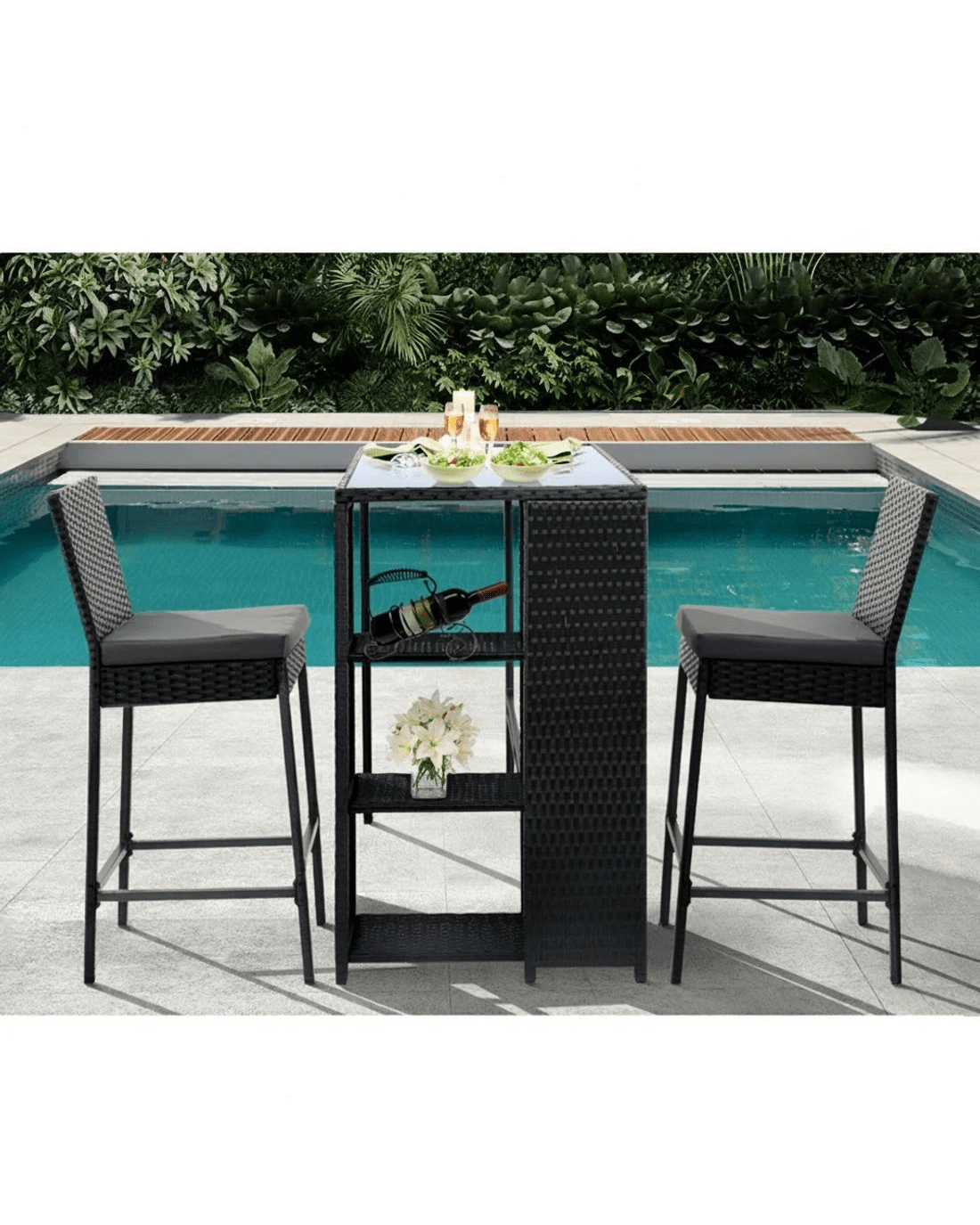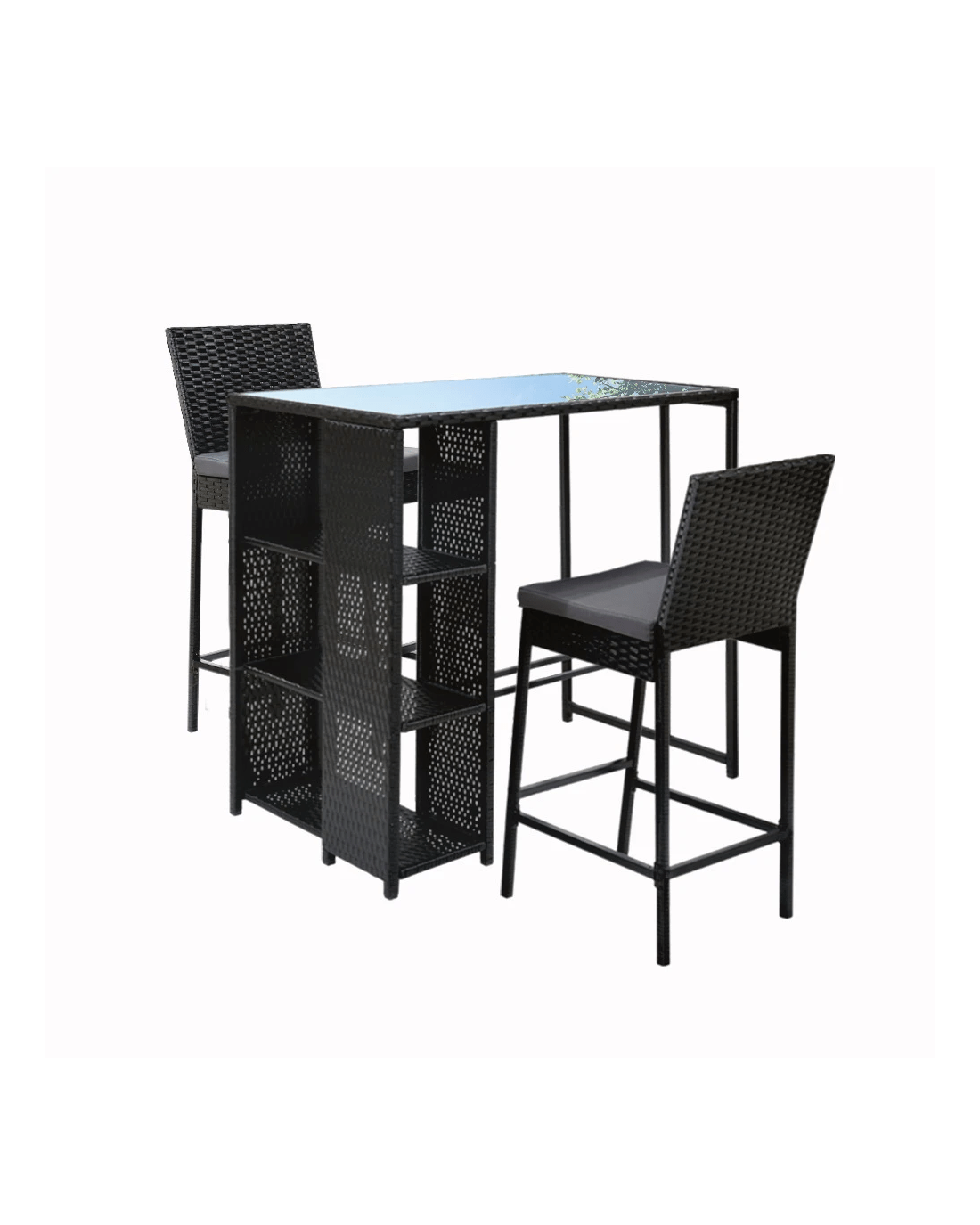 Looking to create a chic and gorgeous outdoor bar setting? The Gardeon 3-piece handwoven wicker outdoor bar table and stool set is a must purchase. It will liven up your outdoor space and help you achieve an elegant outdoor bar setting where you can enjoy day and night and summer and winter with your clan. The set comprises of two chairs and a matching table with storage shelves. Its beautiful and versatile design makes it perfect for any space. This outdoor set features a lovely wicker weave for a touch of tropical charm, and the PE wicker with heavy-duty, powder-coated steel frame is suitable for all-season use. The thick tempered glass tabletop boasting solid structure and classy design ensures strength, durability, and timeless look, and the chairs have been thoughtfully designed with thick foam and built-in footrest for comfort and convenience. This wicker outdoor bar table and stool set will withstand the test of time. Furthermore, the chairs come with removable cushions and cushion covers that can be removed to suit different seasons and keep clean. Now create a praise-worthy spot with just a little creativity that will wow your guests using our Gardeon wicker outdoor dining set.