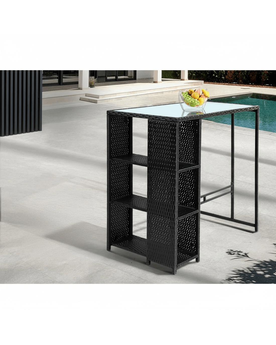 Bar table with storage shelves