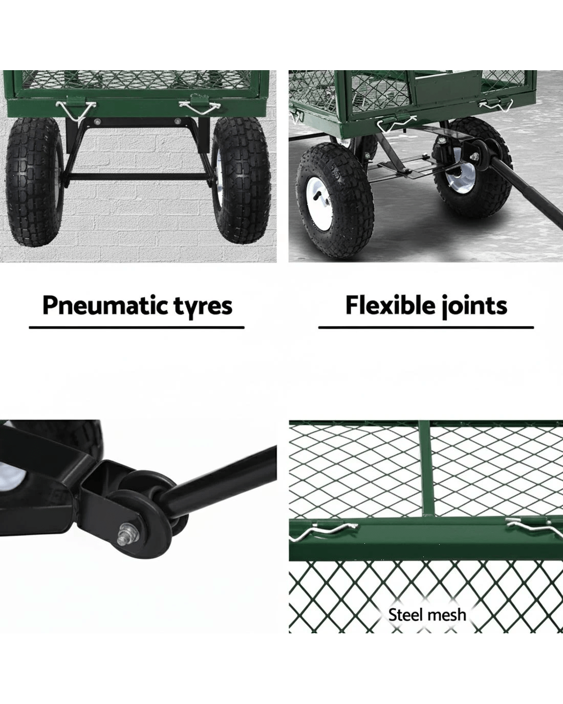 Gardeon 360kg Mesh Garden Cart Steel Removable Sides Trolley Wagon ATV Trailer - Green