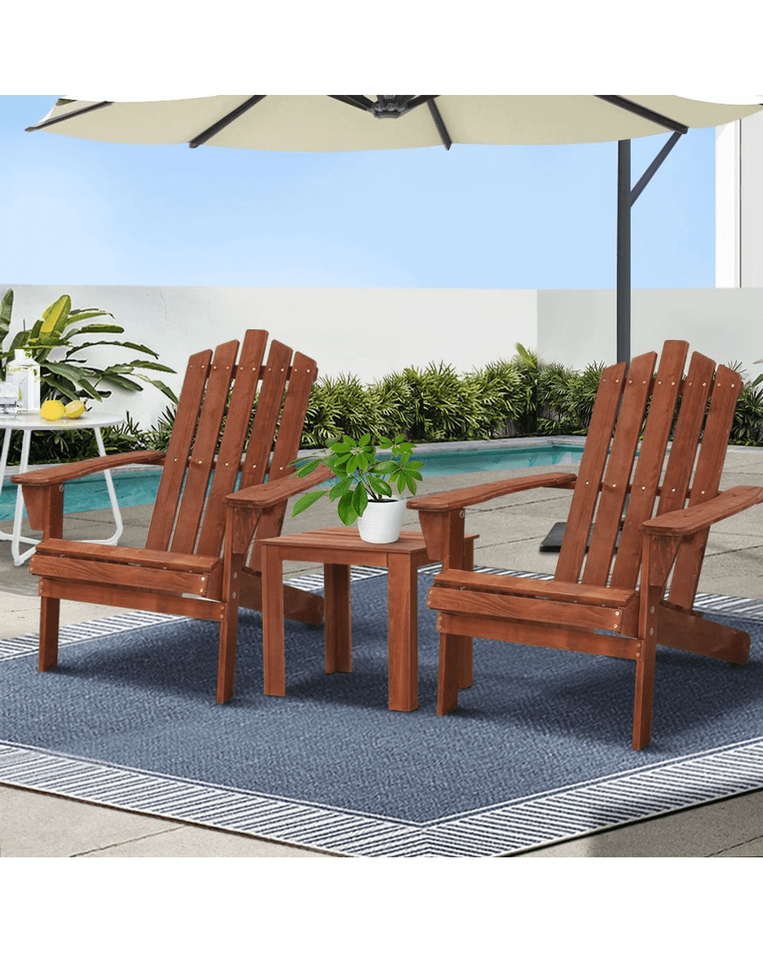 Sold by Aisle SixGardeon 3PC Adirondack Outdoor Table and Chairs Wooden Beach Chai - Brown