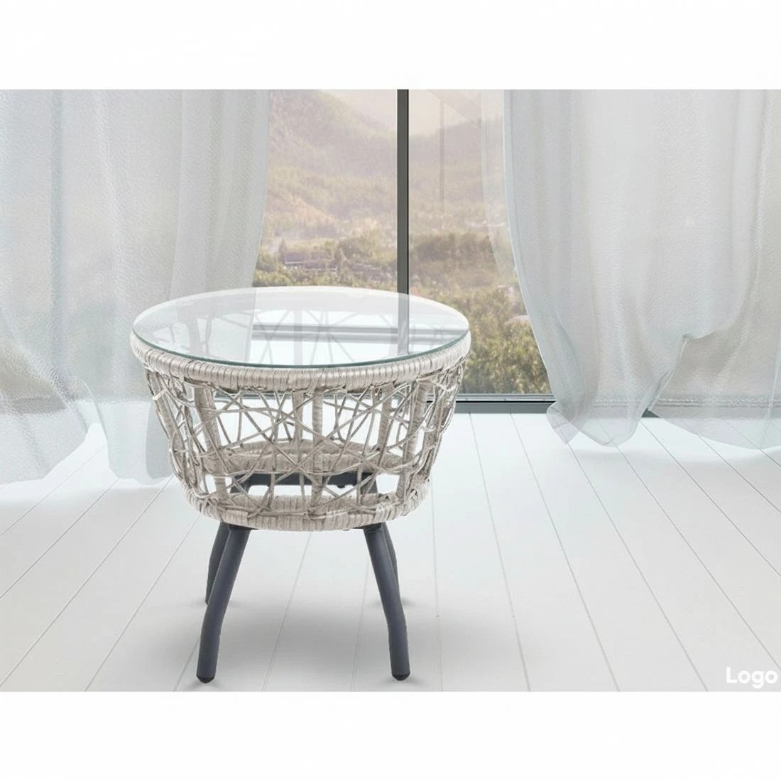 Gardeon 3PC Bistro Set Outdoor Furniture Rattan Table Chairs Patio Garden Cushion - Grey