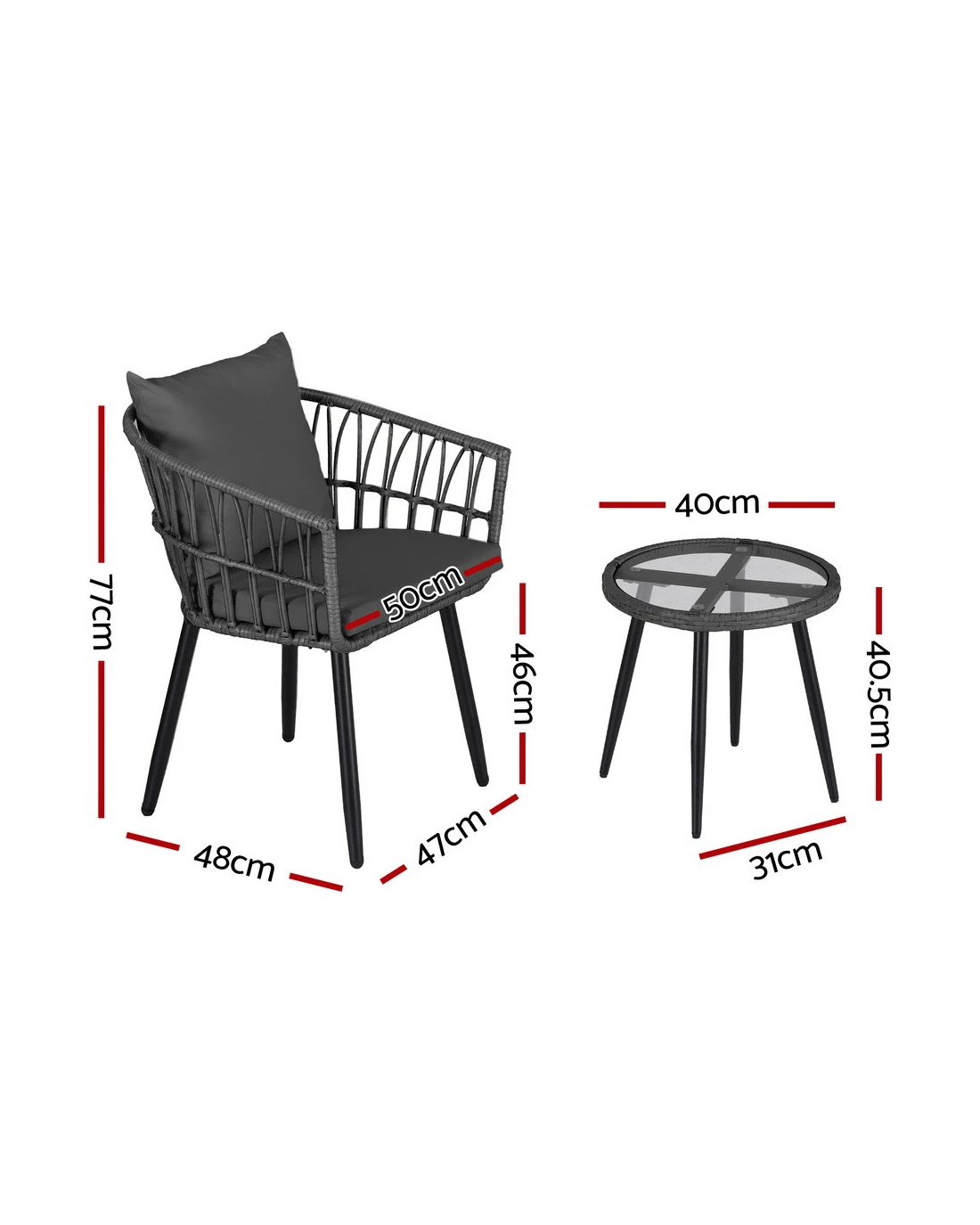 Chair dimensions:50cm x48cm x 77cm