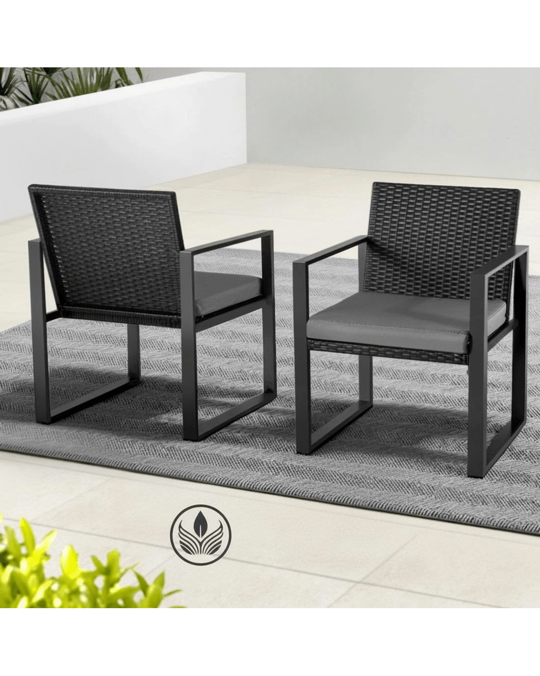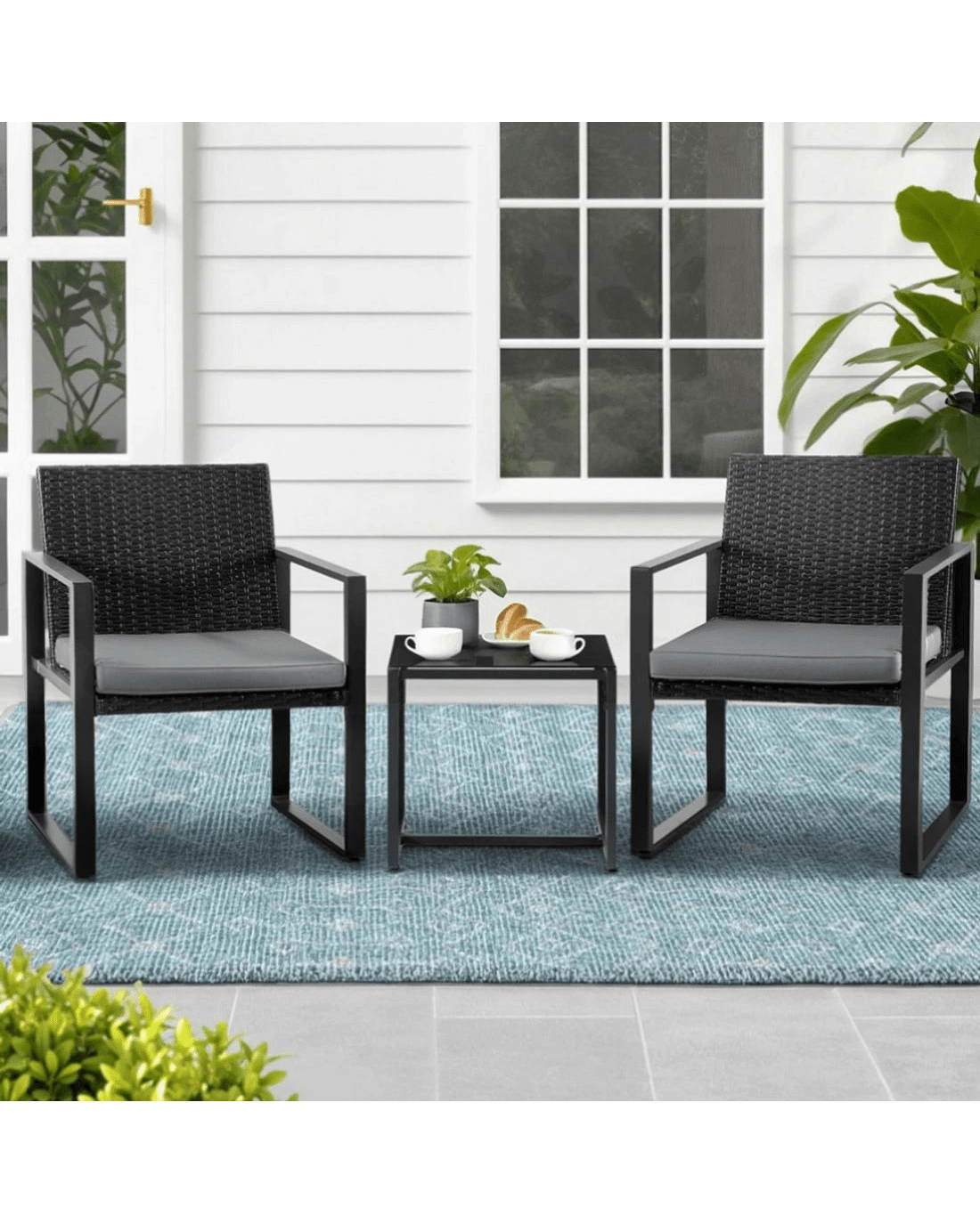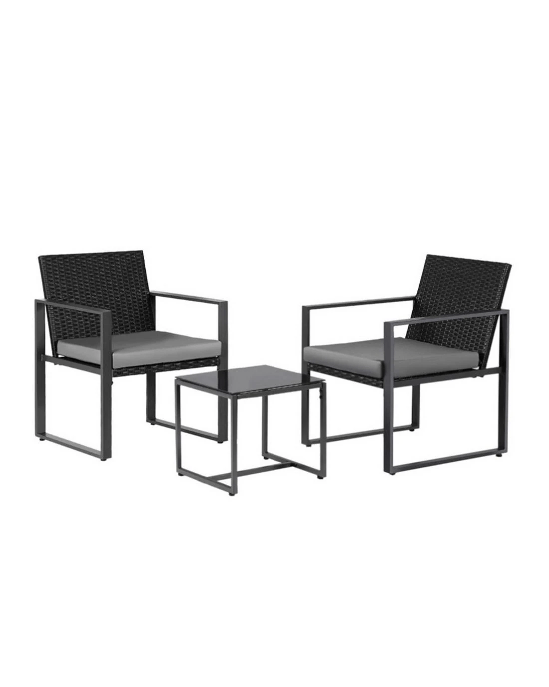 Gardeon 3PC Outdoor Bistro Set Patio Furniture Wicker Dining Chairs Table Cushion - Black