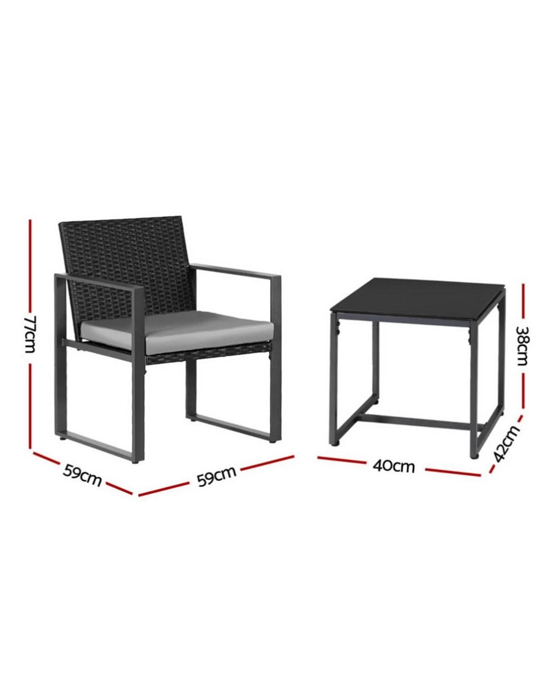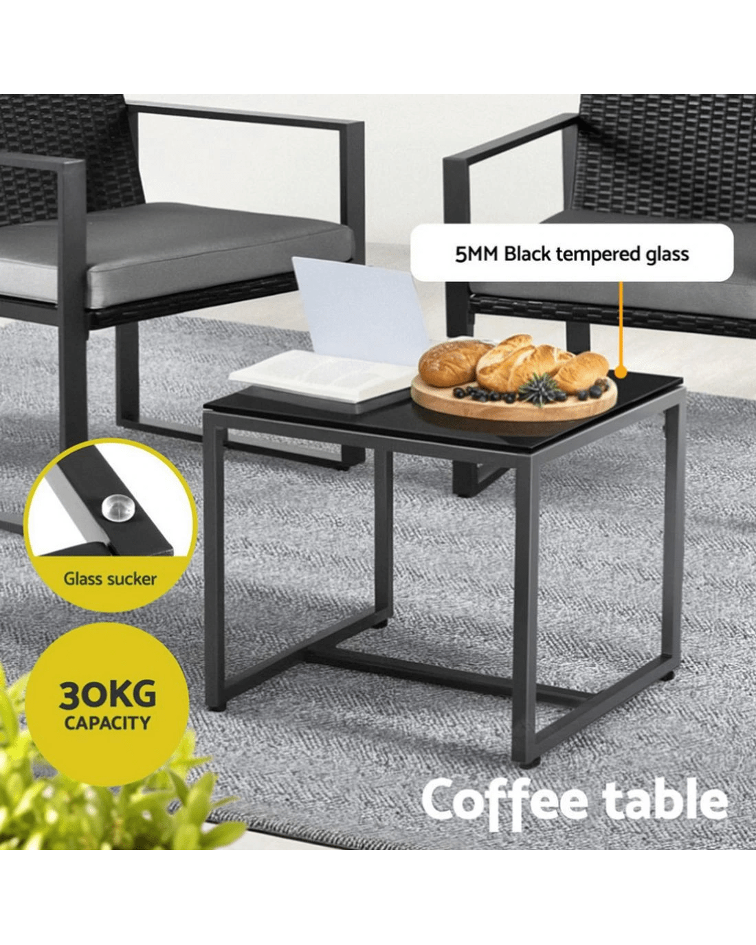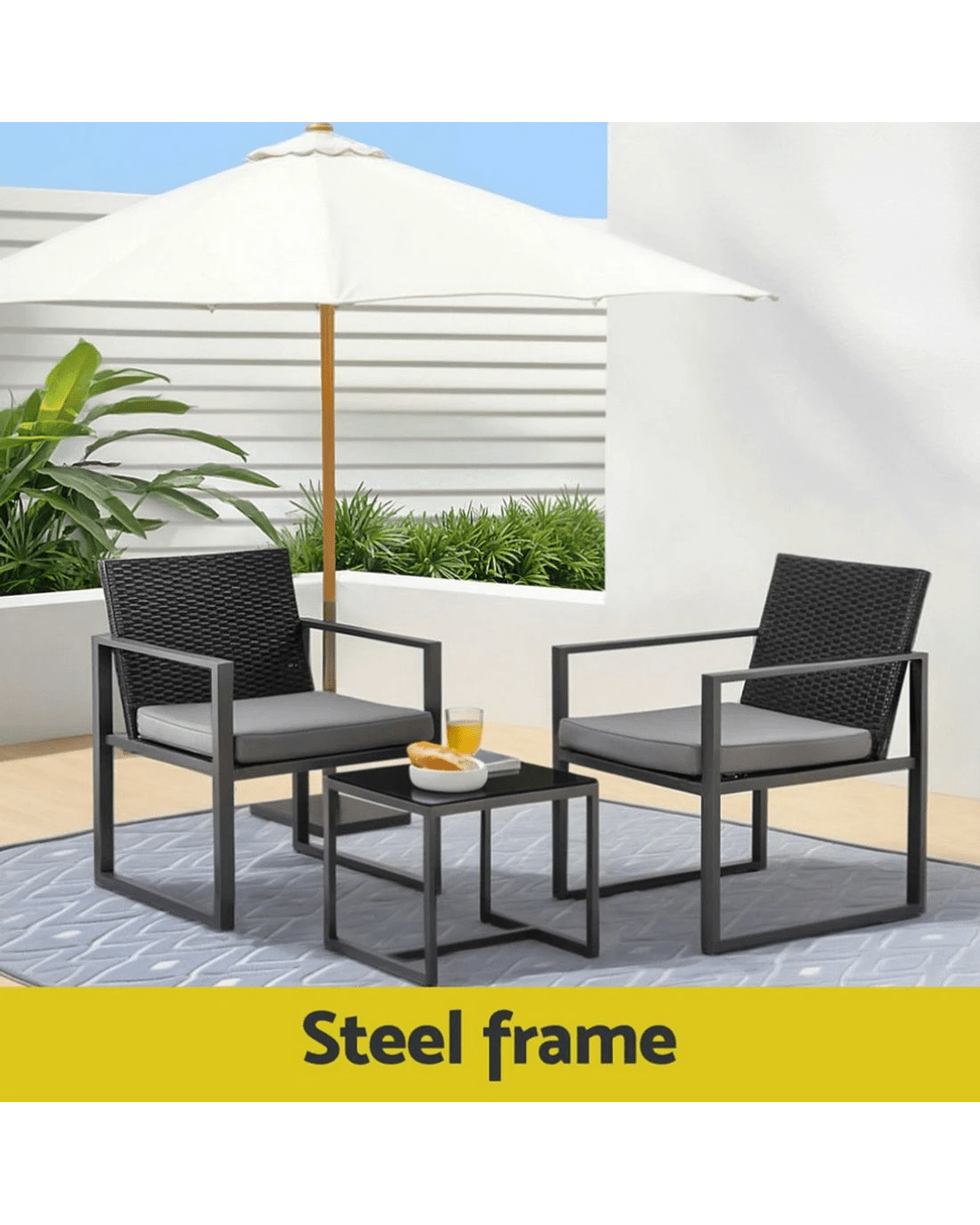 Gardeon 3PC Outdoor Bistro Set Patio Furniture Wicker Dining Chairs Table Cushion - Black