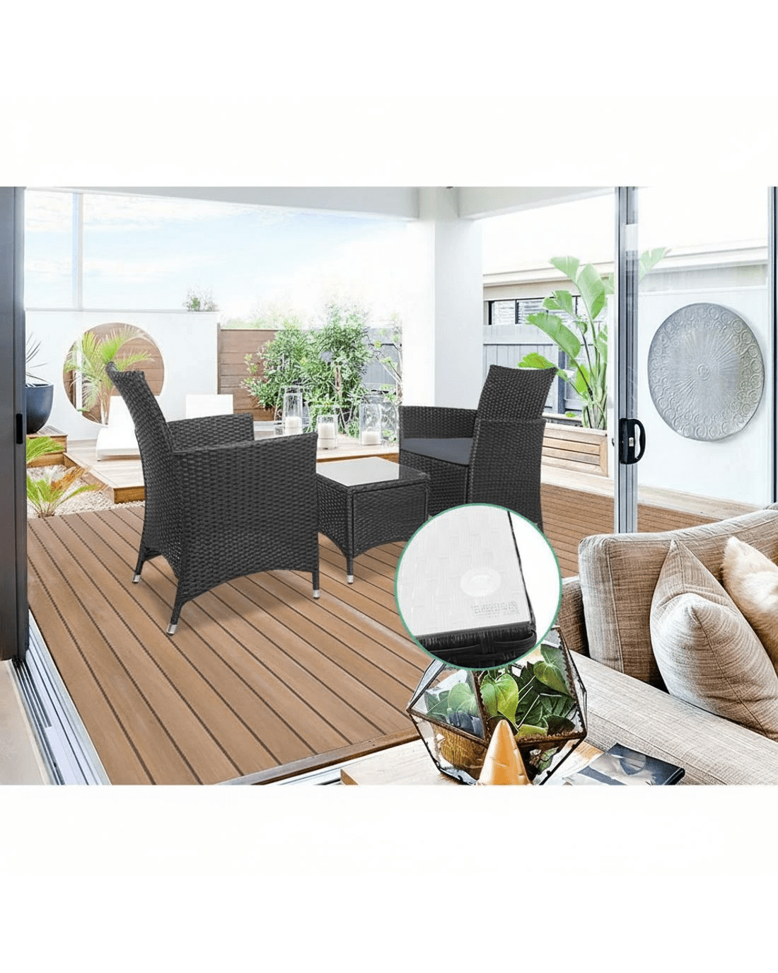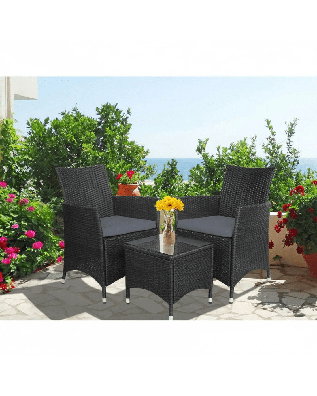 That old outdoor furniture is beginning to show its age? Or your spanking new deck needs a good outdoor furniture set? Look no further than our high quality PE Wicker 3-piece Outdoor Chair and Table Set.
