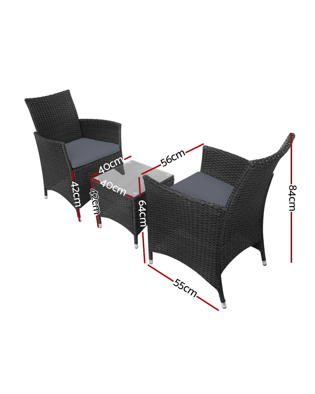 For seating comfort, the cushions comprise 5cm thick high density foam for ultra softness encased in washable and removable cushion covers. Not least, the accompanying table features a 5cm thick tempered glass top for a touch of class and sophistication.