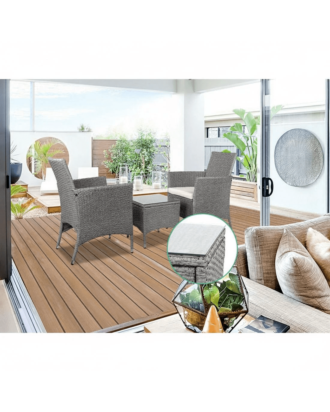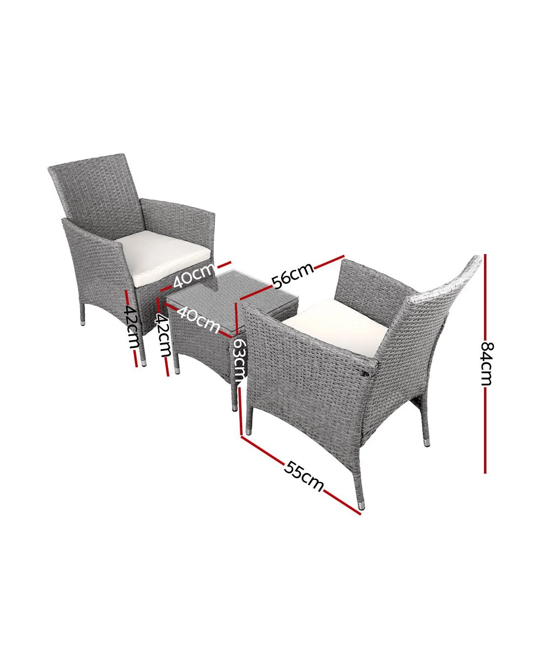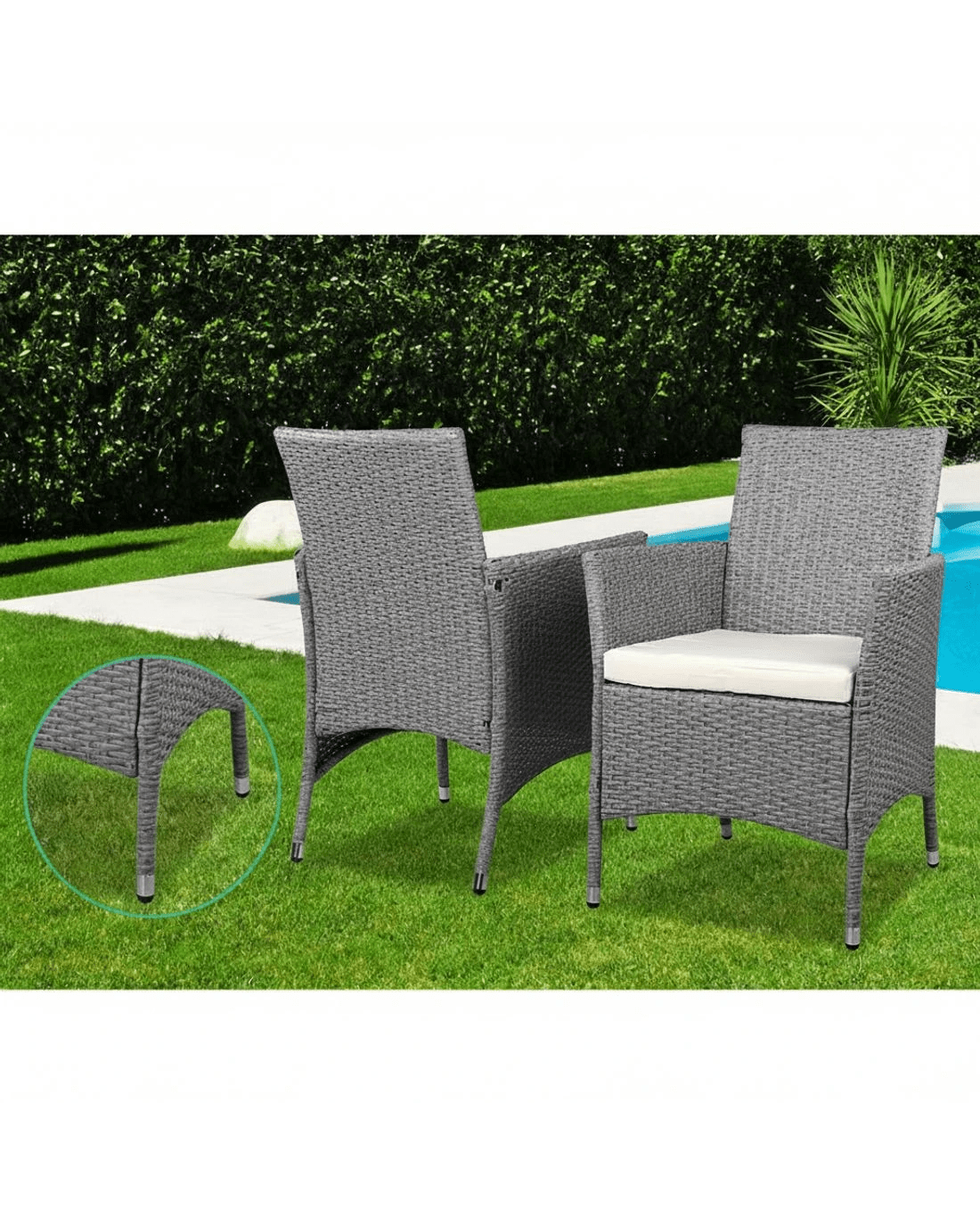 Sold by Aisle SixGardeon 3PC Outdoor Bistro Set Patio Furniture Wicker Setting Chairs Table Cushion - Grey