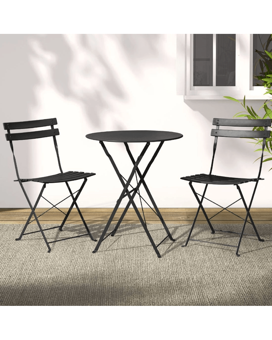 Gardeon 3PC Outdoor Bistro Set Steel Table and Chairs Patio Furniture - Black