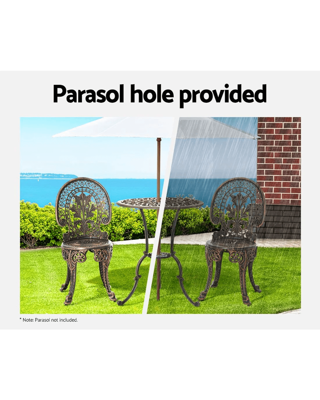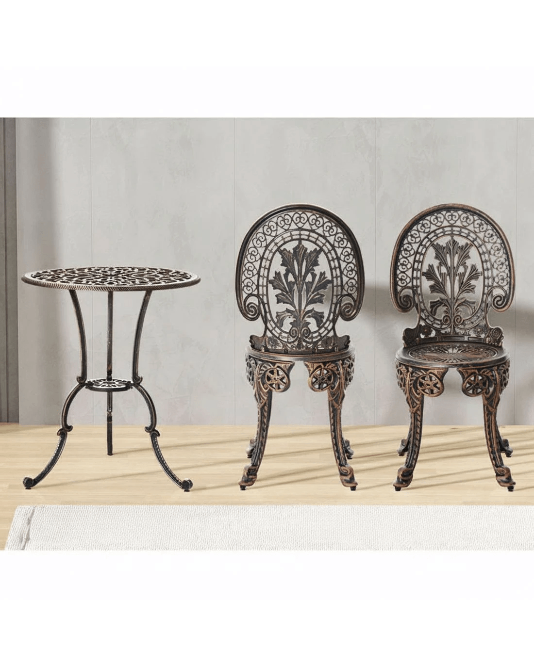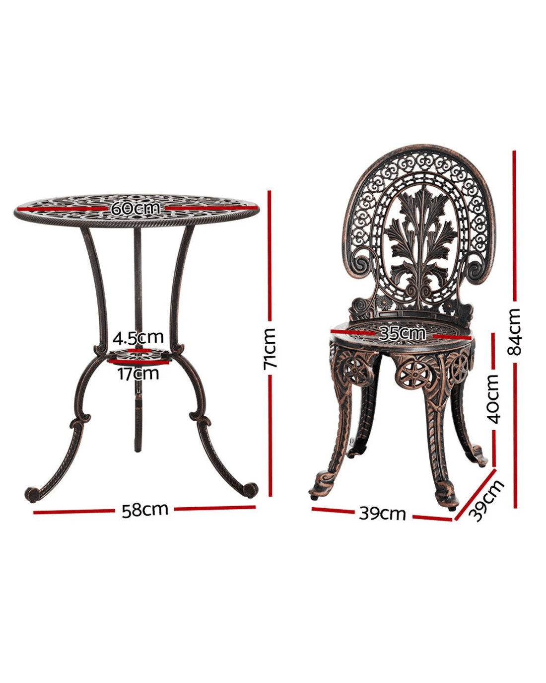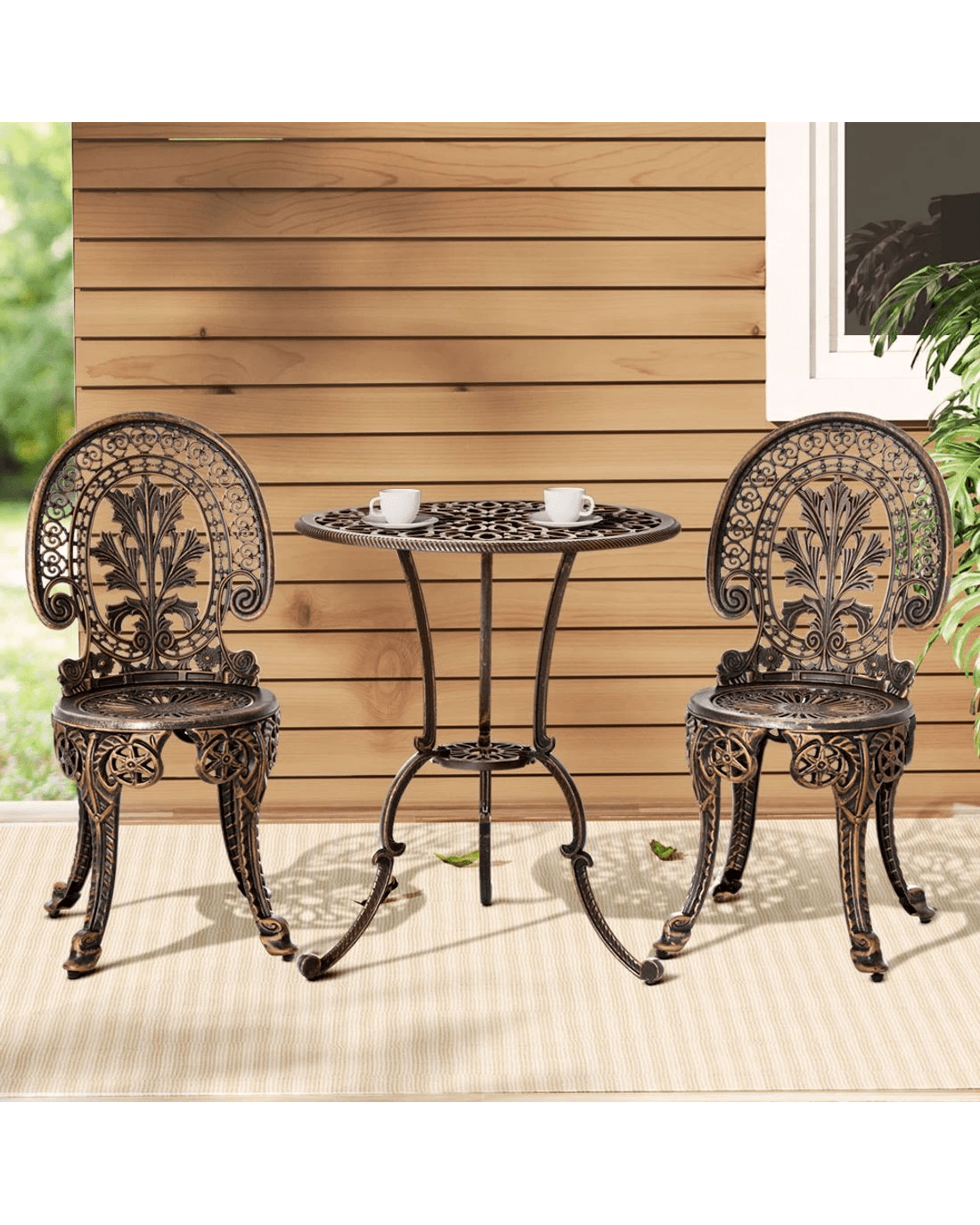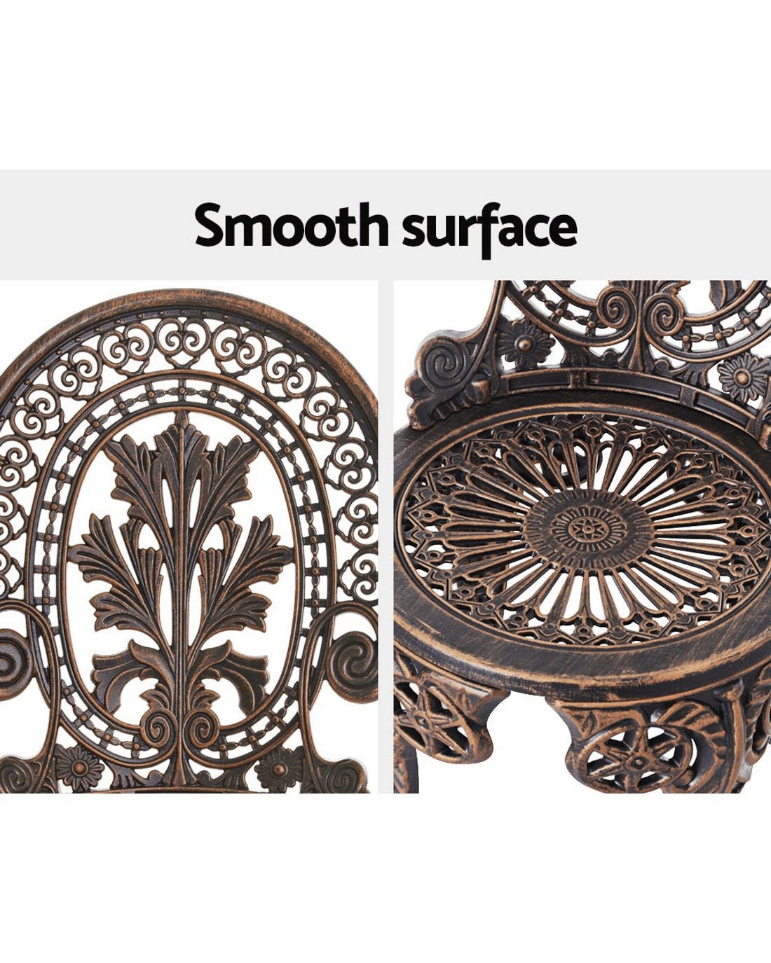 Gardeon 3PC Patio Furniture Outdoor Bistro Set Dining Chairs Cast Aluminium Bronze - Bronze