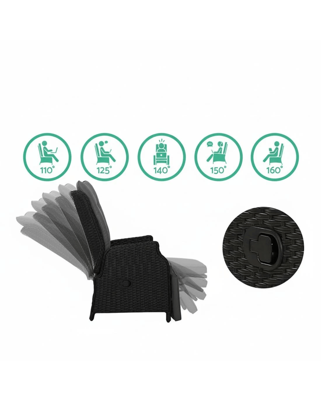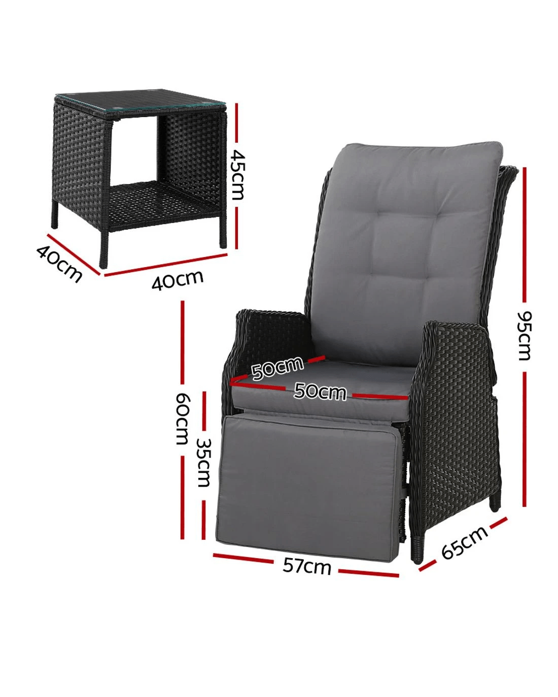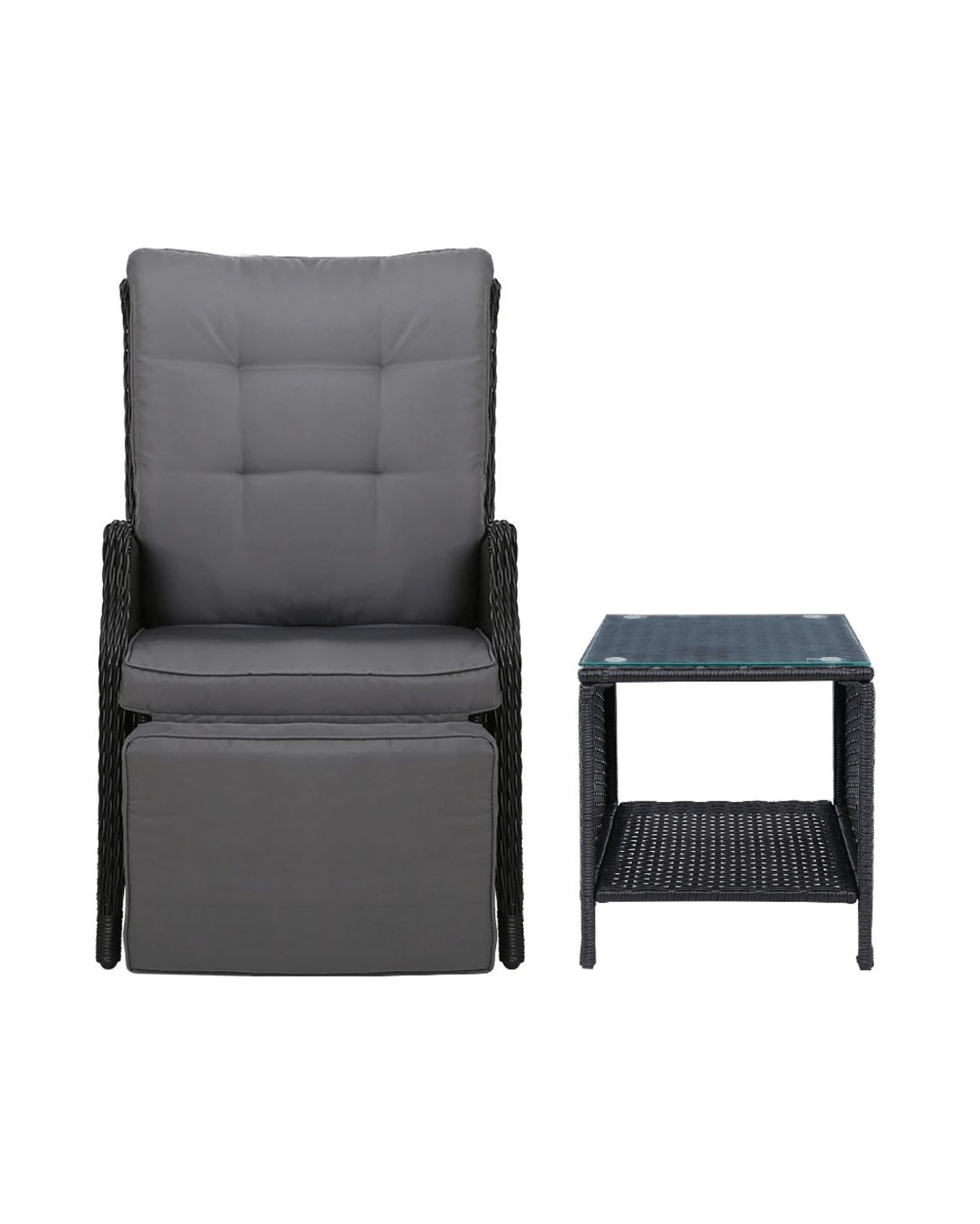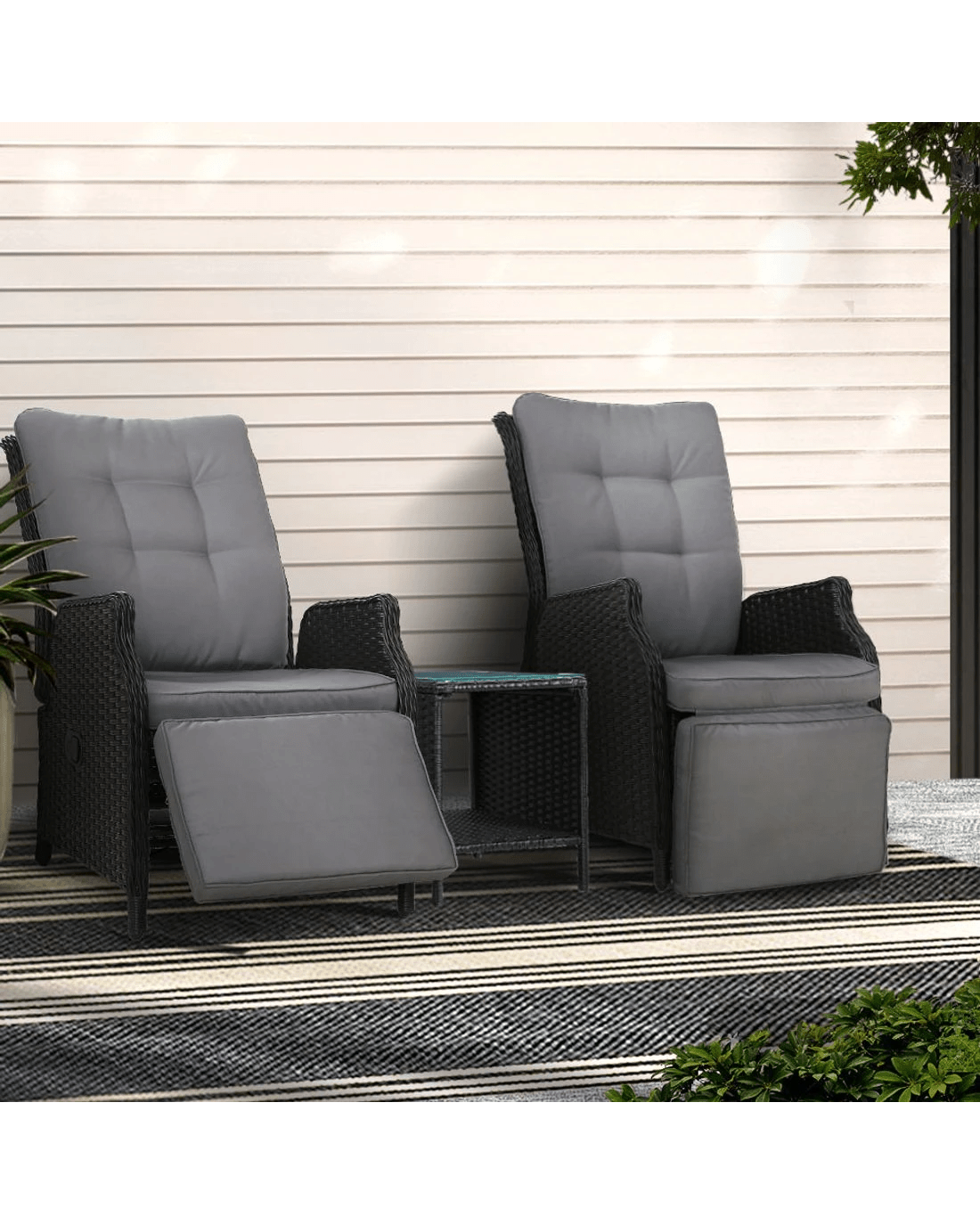 Gardeon 3PC Recliner Chairs Table Sun lounge - Black