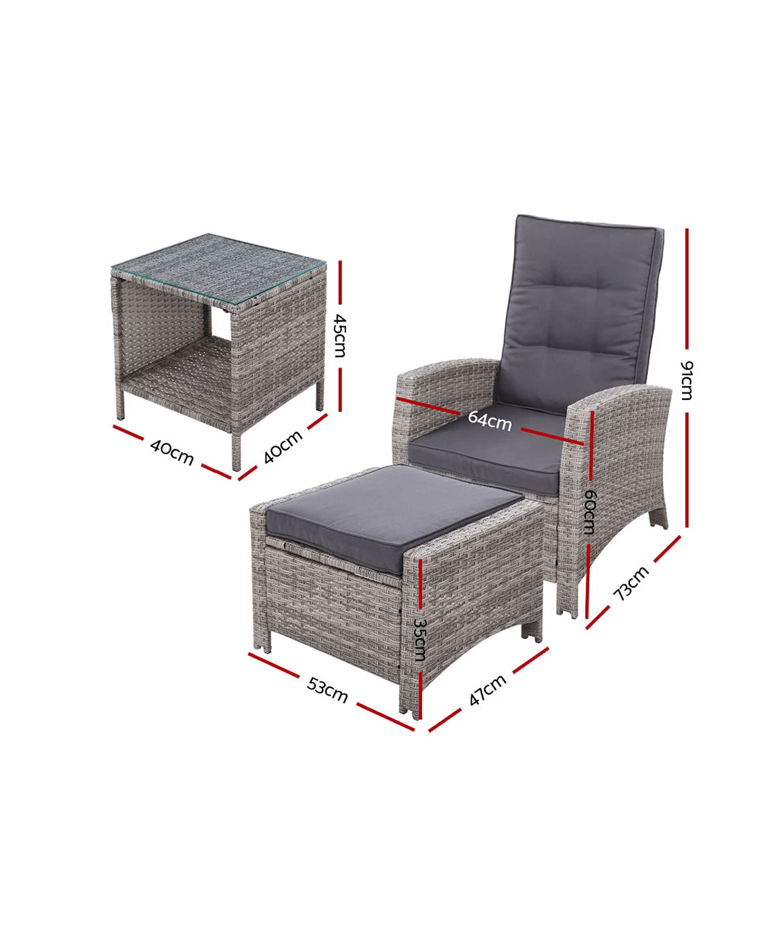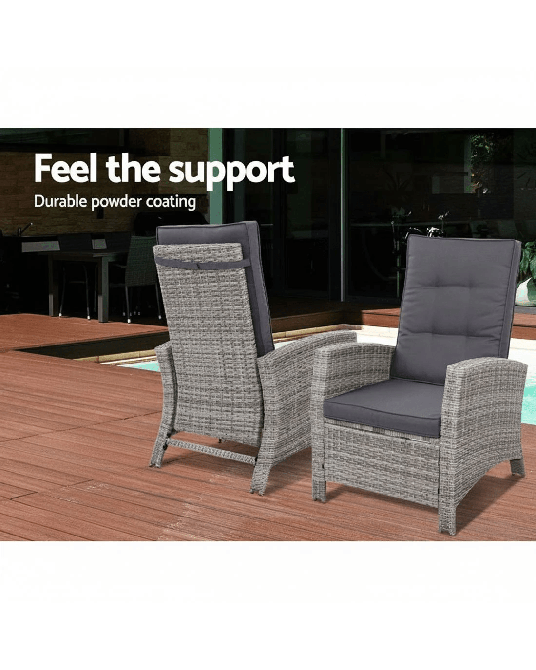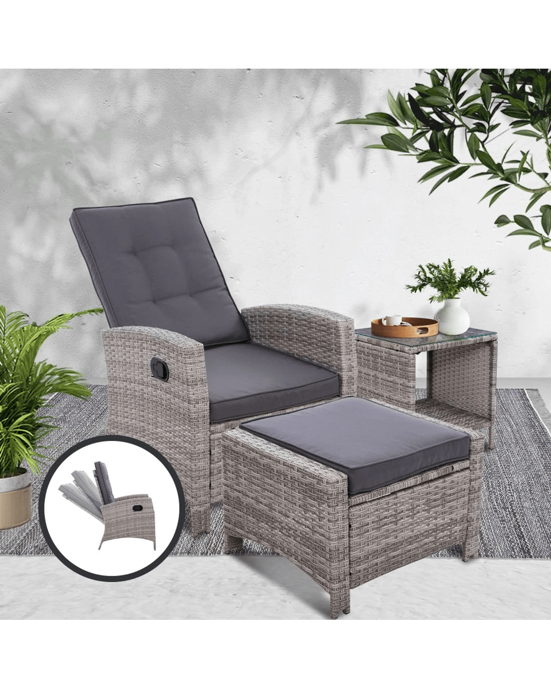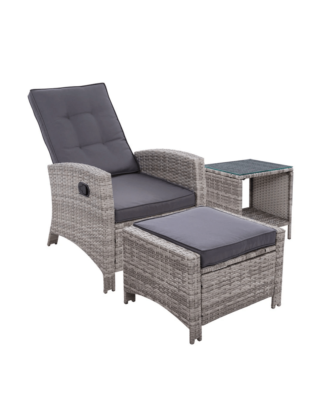 Sold by Aisle SixGardeon 3PC Recliner Chairs Table Sun lounge Wicker Outdoor Furniture Adjustable - Grey