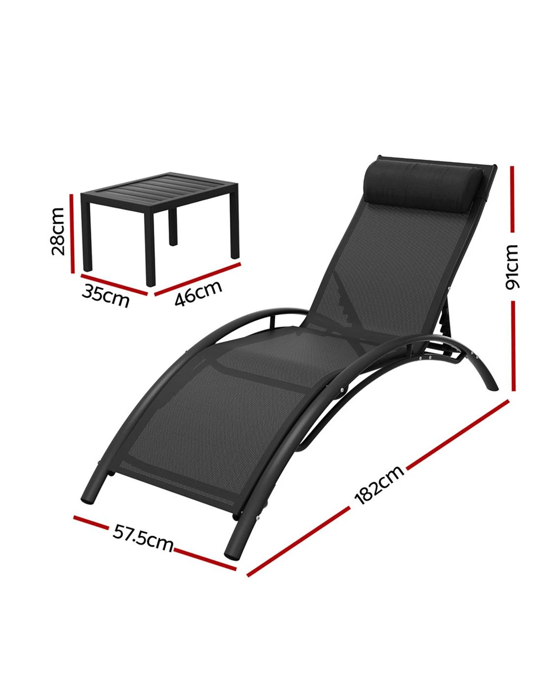 Sold by Aisle SixGardeon 3PC Sun Lounge Outdoor Lounger - Black