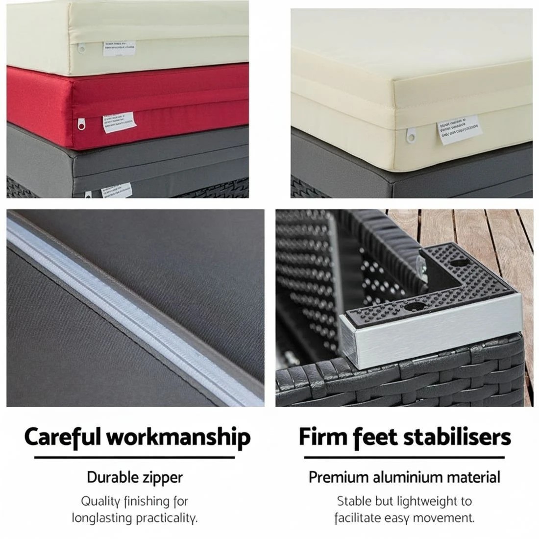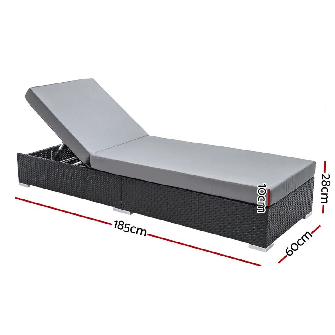 Gardeon 3 Piece Rattan Sun Lounge Set Adjustable Backrests Cushioned Day Bed Outdoor Wicker Aluminium Frame - Black