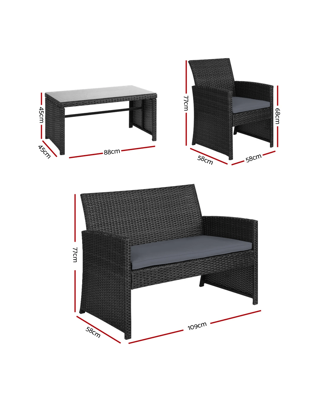 Love seat dimensions :109*58*77cm