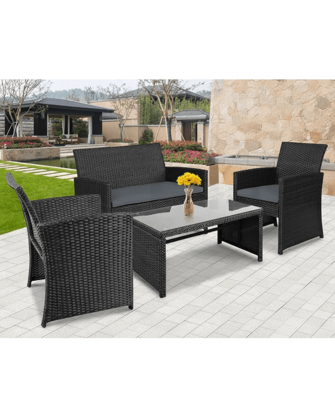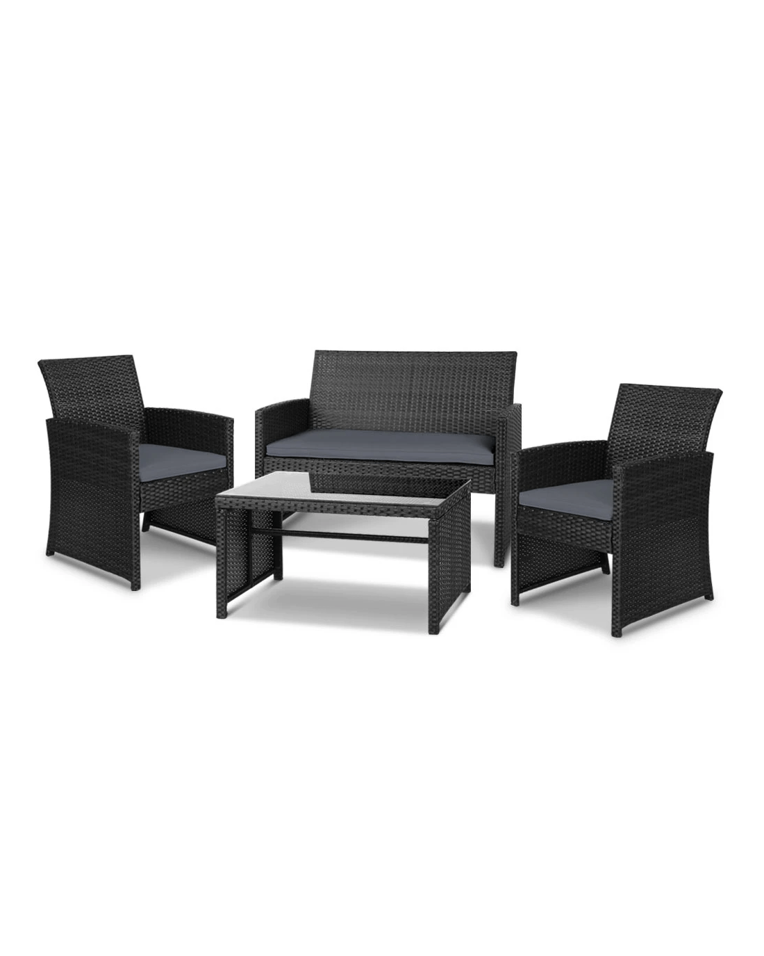 Gardeon 4 PCS Outdoor Sofa Set Rattan Chair Table Setting Garden Furniture - Black