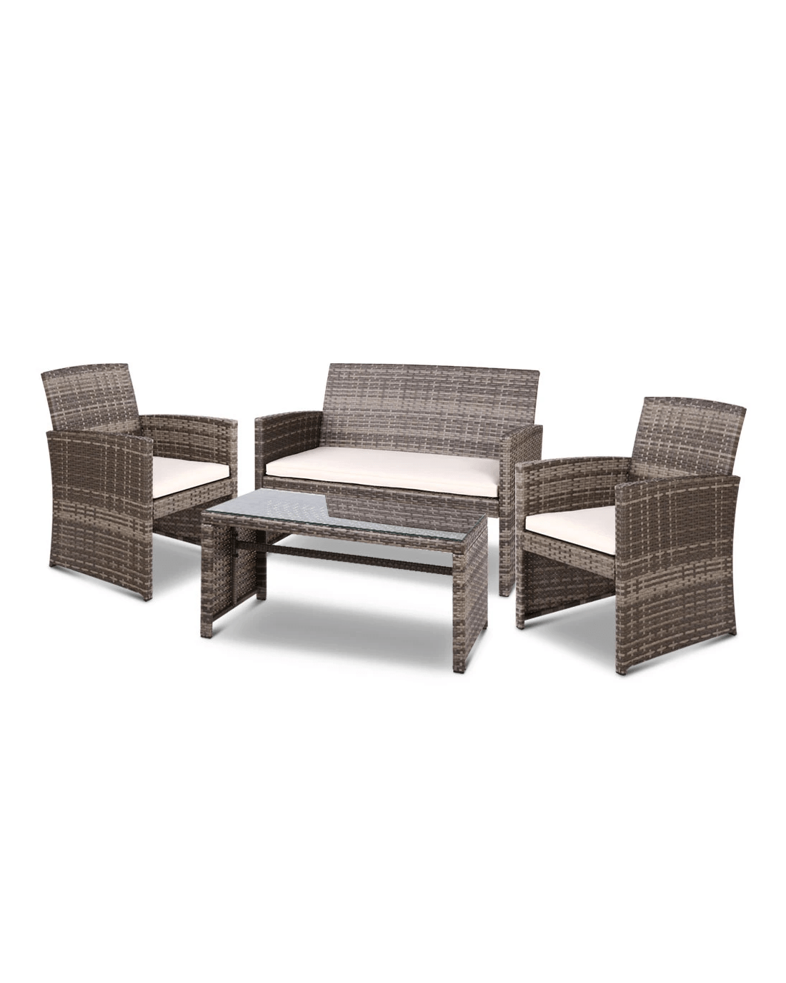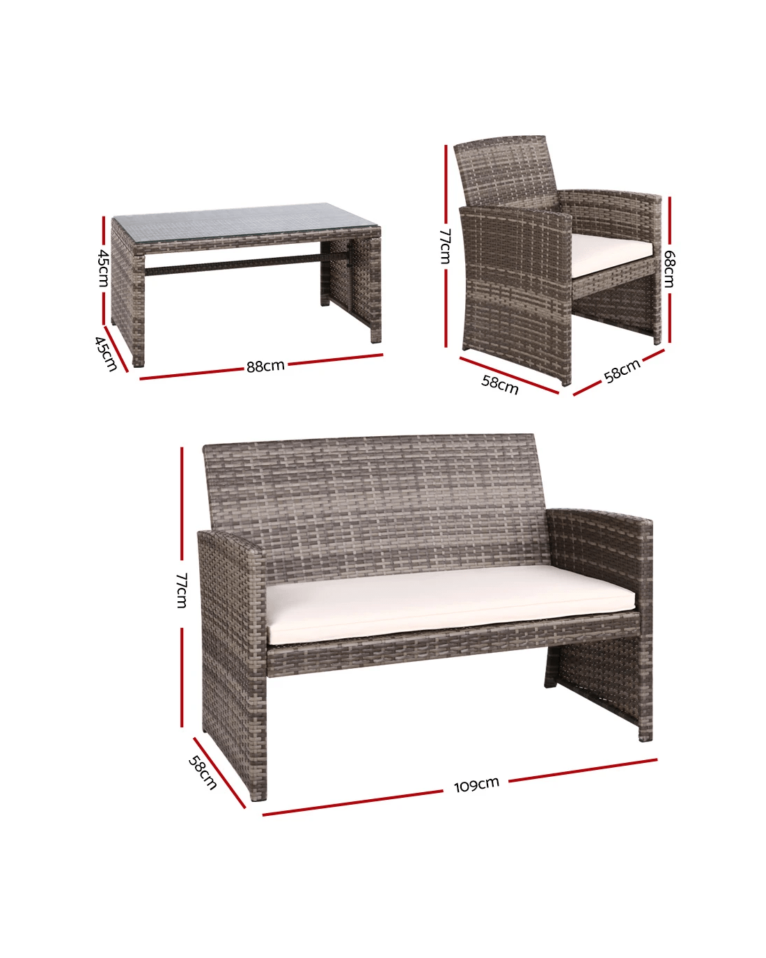 Gardeon 4 PCS Outdoor Sofa Set Rattan Chair Table Setting Garden Furniture - Grey