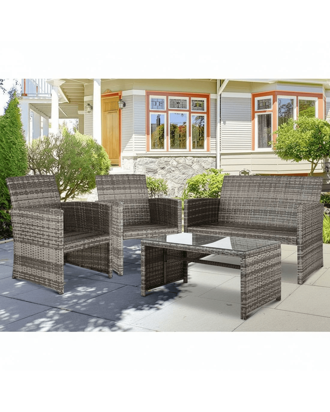 Live it up in style with our stylish Gardeon 4-piece rattan outdoor set. With its sleek lines, neutral tones and exotic wicker, our outdoor set simply looks inviting and charming by the poolside or at the deck or even in your living room. Constructed from heavy-duty, powder coated steel frame and commercial grade hand woven, weather-resistant PE rattan wicker, the set also features comfortable seat cushions with removable and washable covers for easy maintenance. Not least, the matching coffee table comprises a hardy and 5mm thick tempered glass top to complement the lovely love seat and armchairs.