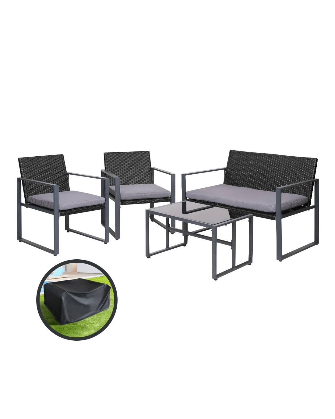 Gardeon 4 PCS Outdoor Sofa Set Rattan Furniture with Storage Cover Chairs - Black
