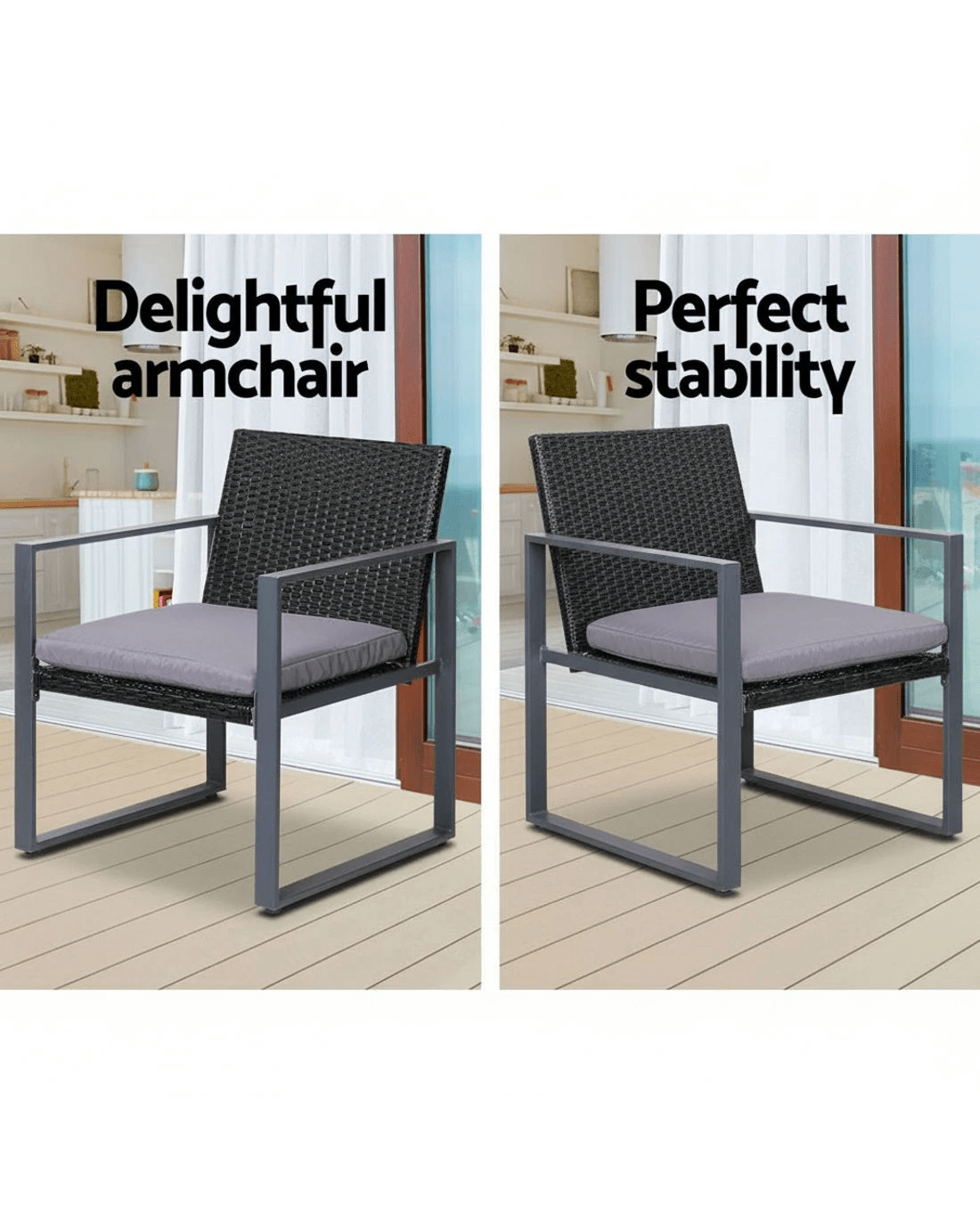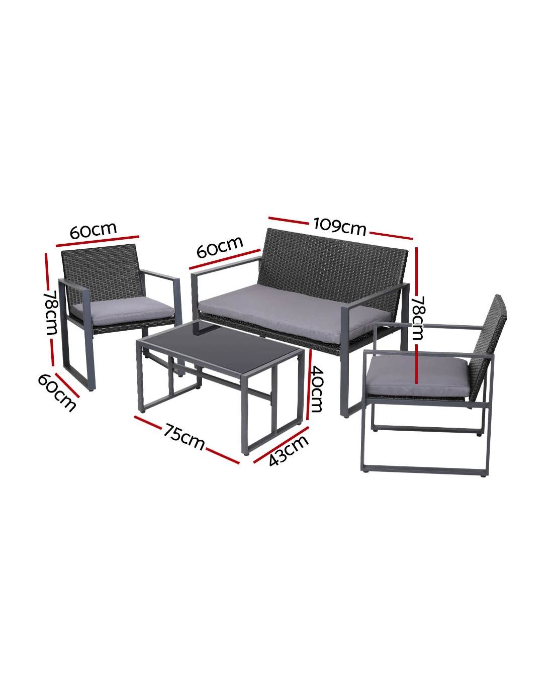 Meticulously crafted, our Gardeon 4-piece Rattan Outdoor Set comprises two armchairs, a two-seater and a matching table for a beautiful integrated look. Its presence will definitely add panache and style to your deck, patio or even living room. Made of PE wicker and a sturdy steel frame, this set is designed to last through all weather and the test of time. The 5mm thick tempered glass top with non-slip suction pads for the table also ensures strong and safe use with total peace of mind. Not least, the cushion covers are removable and washable to maintain their pristine appearance. There is even a bonus storage cover included for you to protect the set from sun and rain when not in use, so that you can keep enjoying your garden parties for many years to come.
