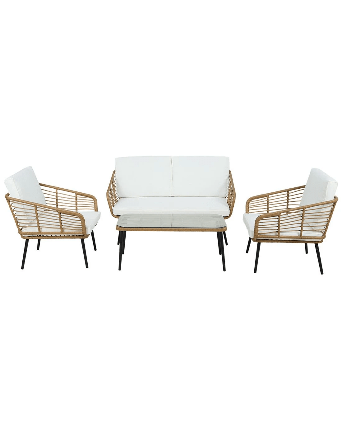 Sold by Aisle SixGardeon 4-Piece Outdoor Sofa Set Rattan Lounge Setting Table Chairs - Brown