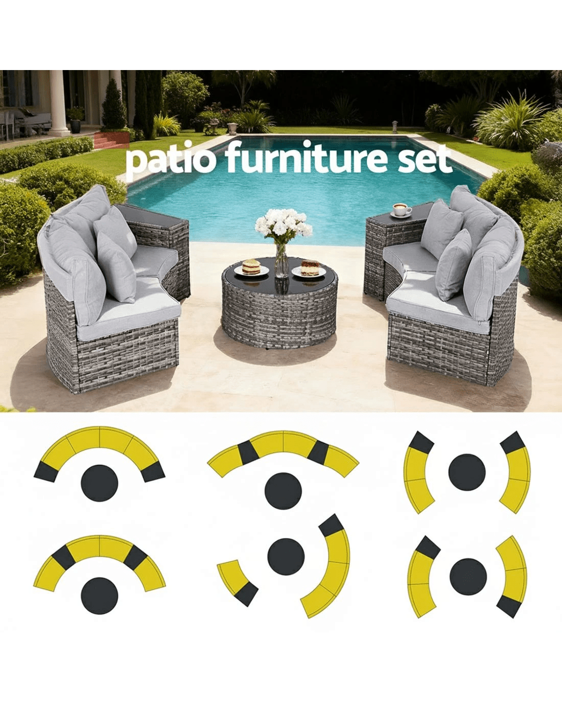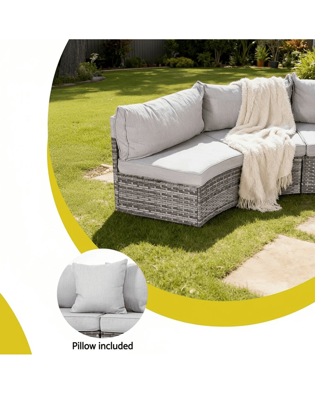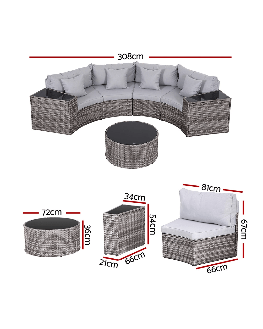 Gardeon 4 Seater Outdoor Sofa Set 7PCS Table Chair Set Garden Rattan Patio - Grey