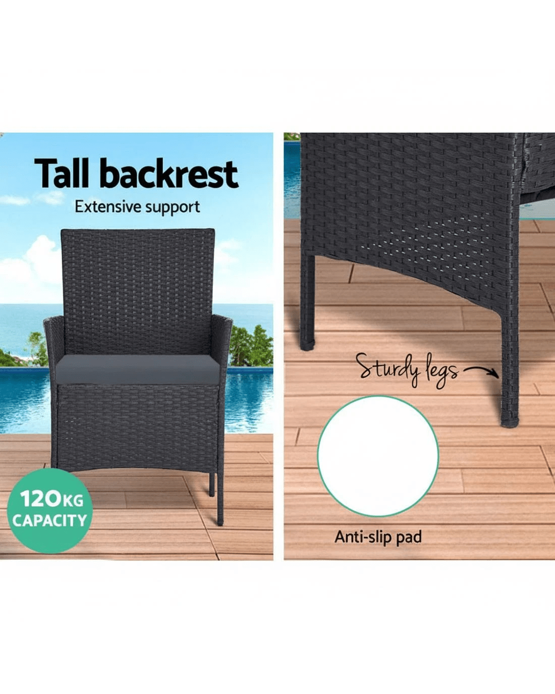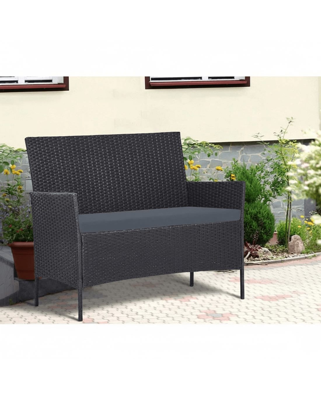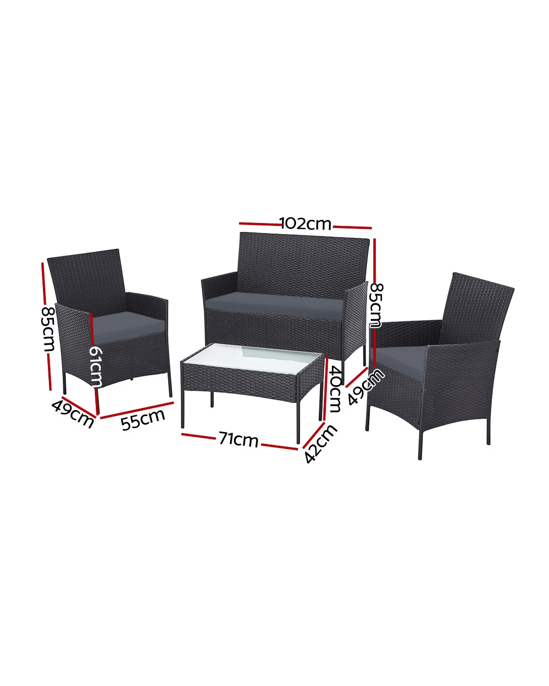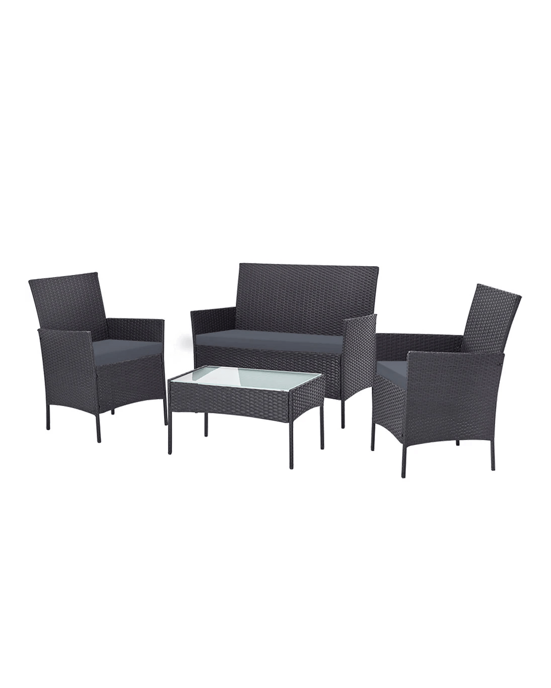 Gardeon 4 Seater Outdoor Sofa Set with Storage Cover Wicker Table Chair DarkGrey - Grey