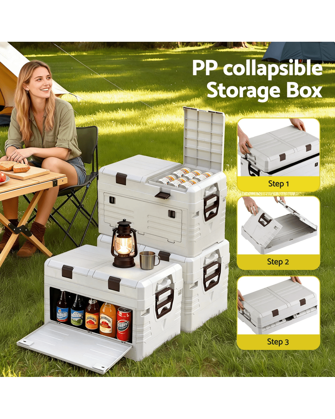 The Gardeon two-tier storage organizer offers three-way access for ultimate convenience. Features include a fully removable top lid and double doors on the top tier with secure clasps. This large-capacity, collapsible box is ideal for home organization in closets, kitchens, or garages. It's also perfect for road trips and camping to store drinks, groceries, and gear. The sturdy, load-bearing design prevents collapse, while the versatile lidded compartments keep your car trunk, sedan, or SUV neatly organized and your items easily visible and accessible.