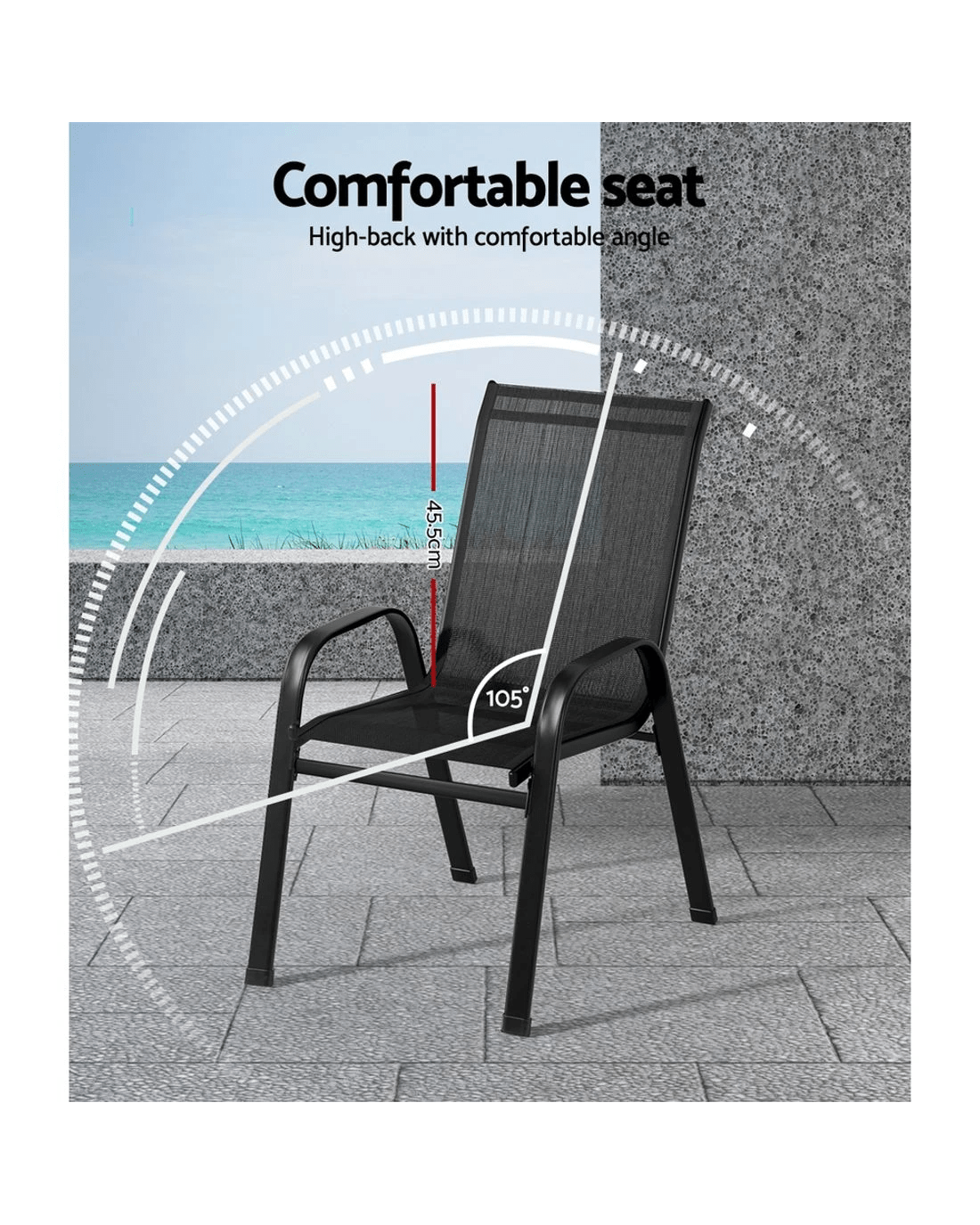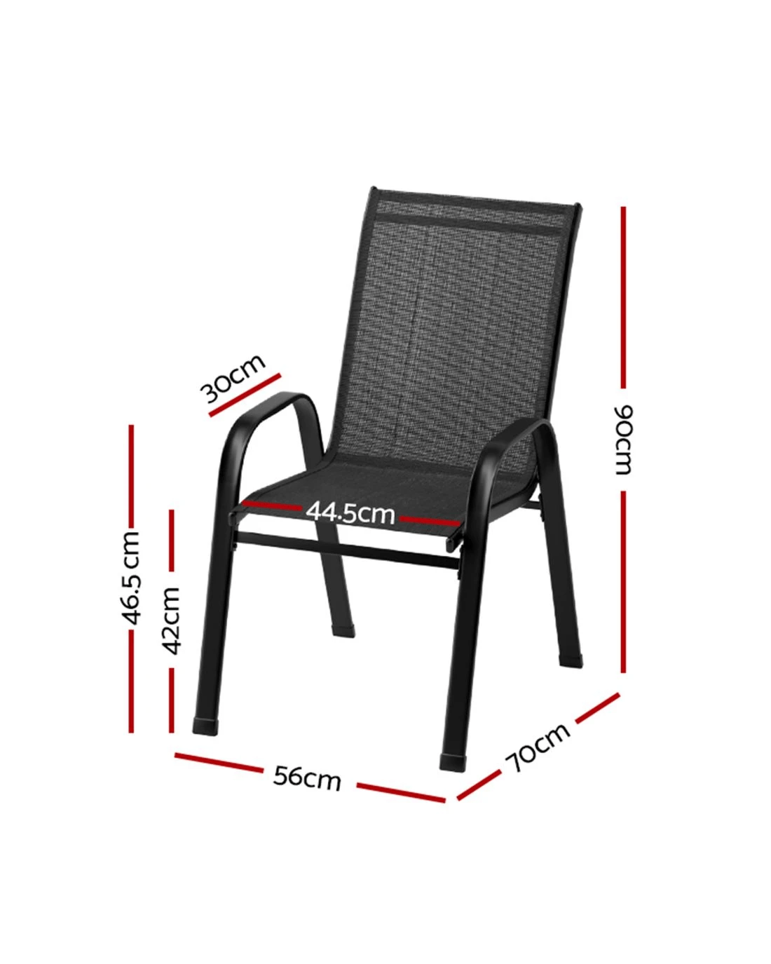 Whether you're hosting an outdoor intimate dinner party or barbeque night for your friends or family, the Gardeon outdoor stackable chair set is perfect to design a gorgeous outdoor setting that will wow your guests. The chairs are stackable, which makes for convenient and easy storage when not required. Designed for years of enjoyment, the chair set boasts classic looks and are made from premium textilene fabric and sturdy metal frame with durable powder coating. The anti-slip feet and good weather-resistance also makes them quite desirable. You can also pair this chair set with our sturdy and beautiful matching table to create a harmonious look.