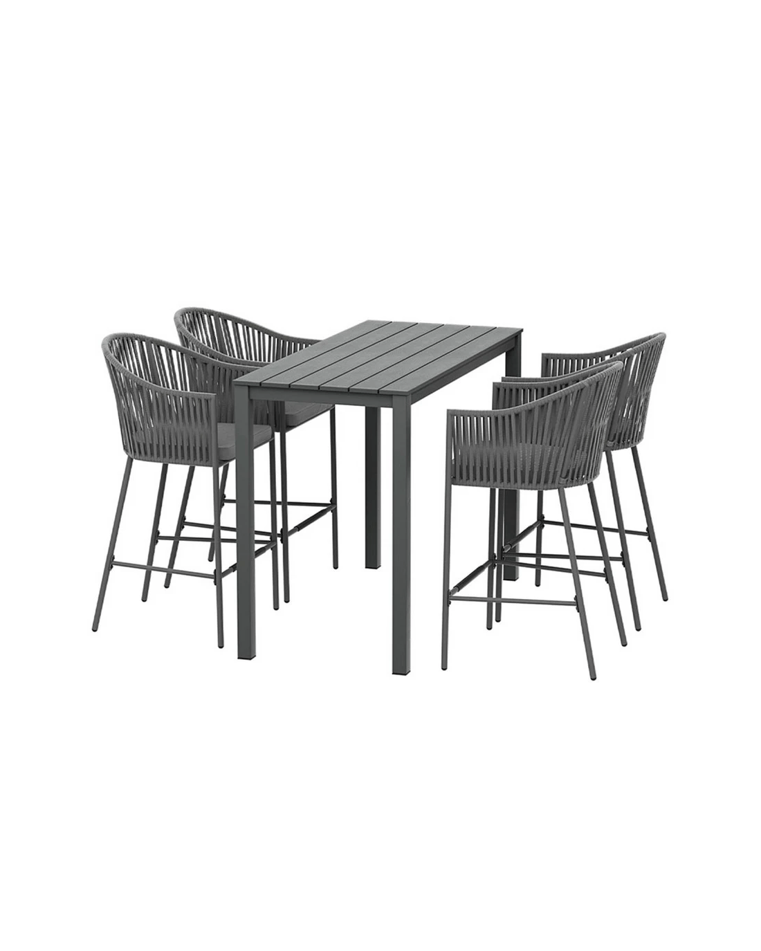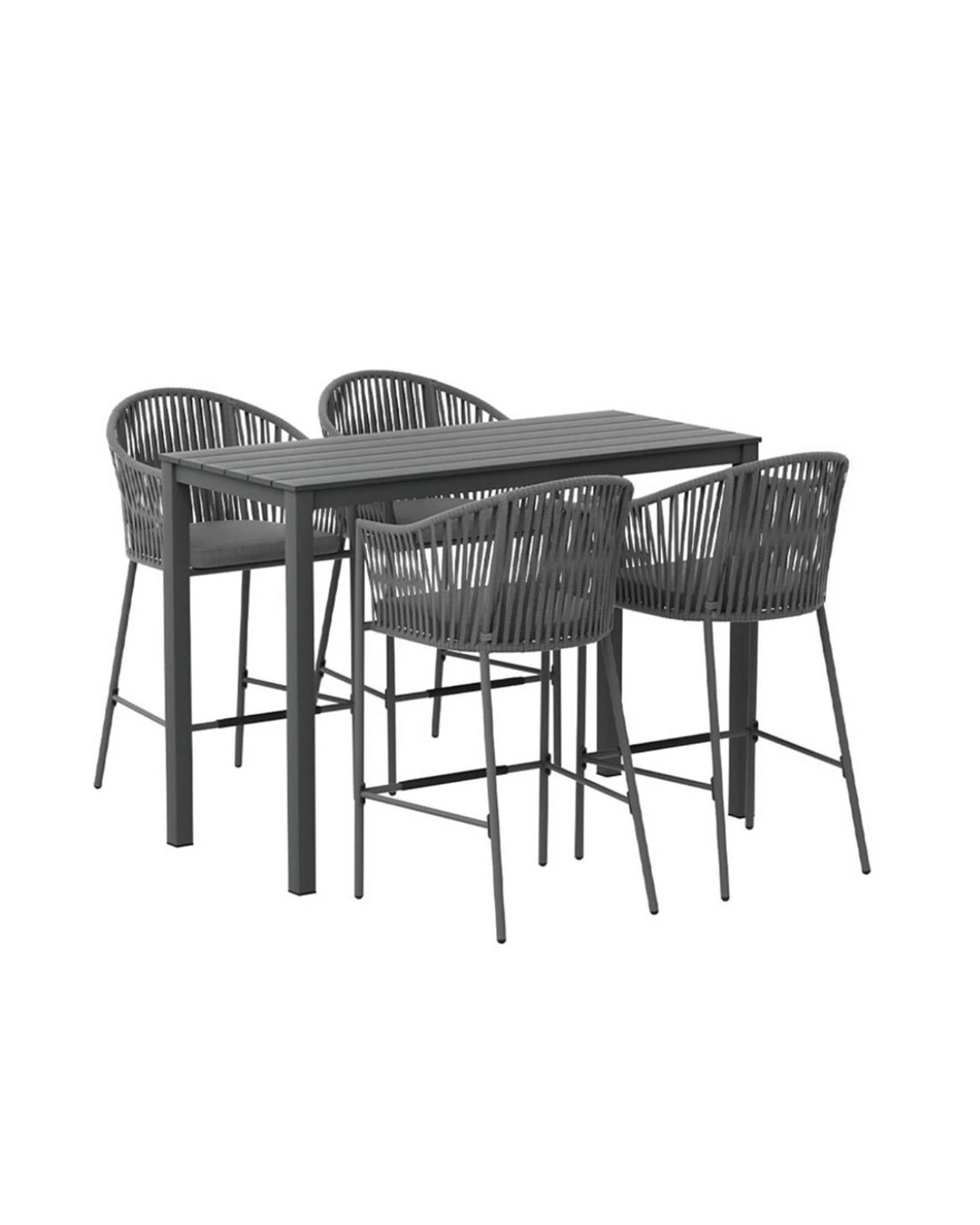 Sold by Aisle SixGardeon 5-Piece Outdoor Bar Set Dining Table Rope Chair Patio Bistro Set - Grey