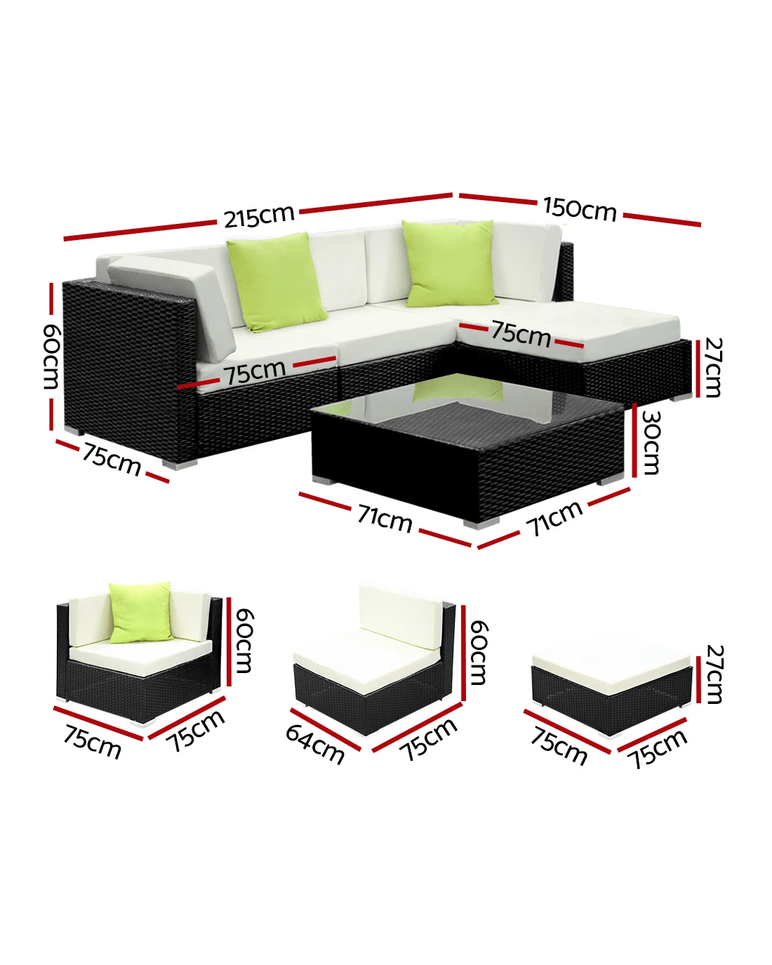 Single sofa dimensions: 64cm x 75cm x 60cm
