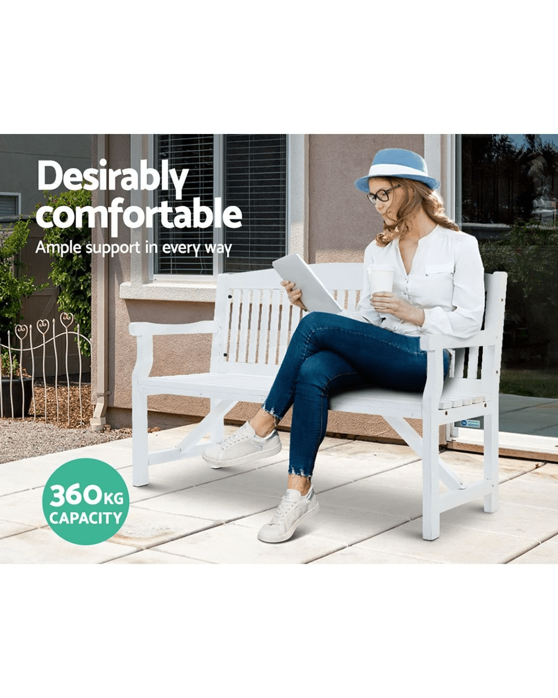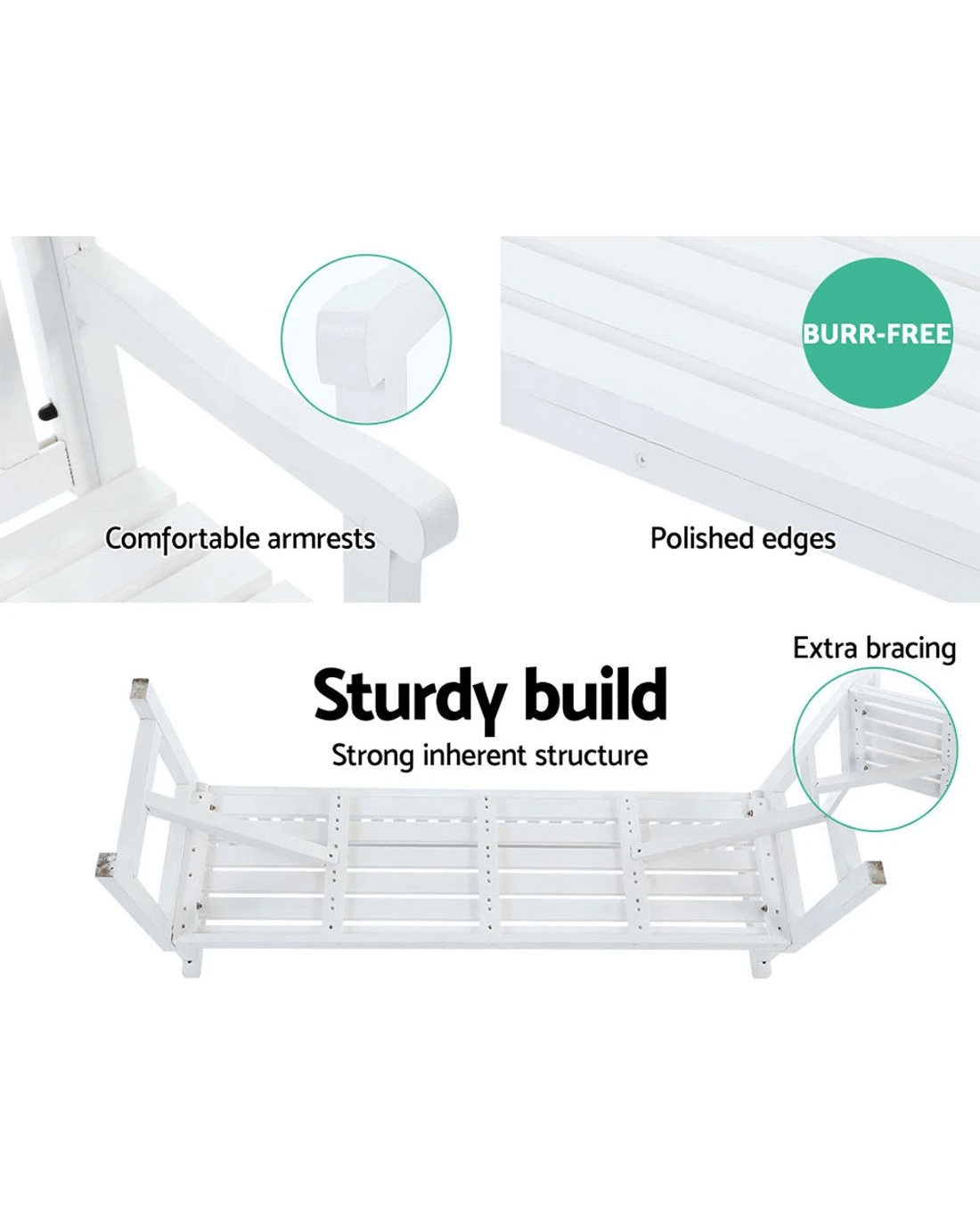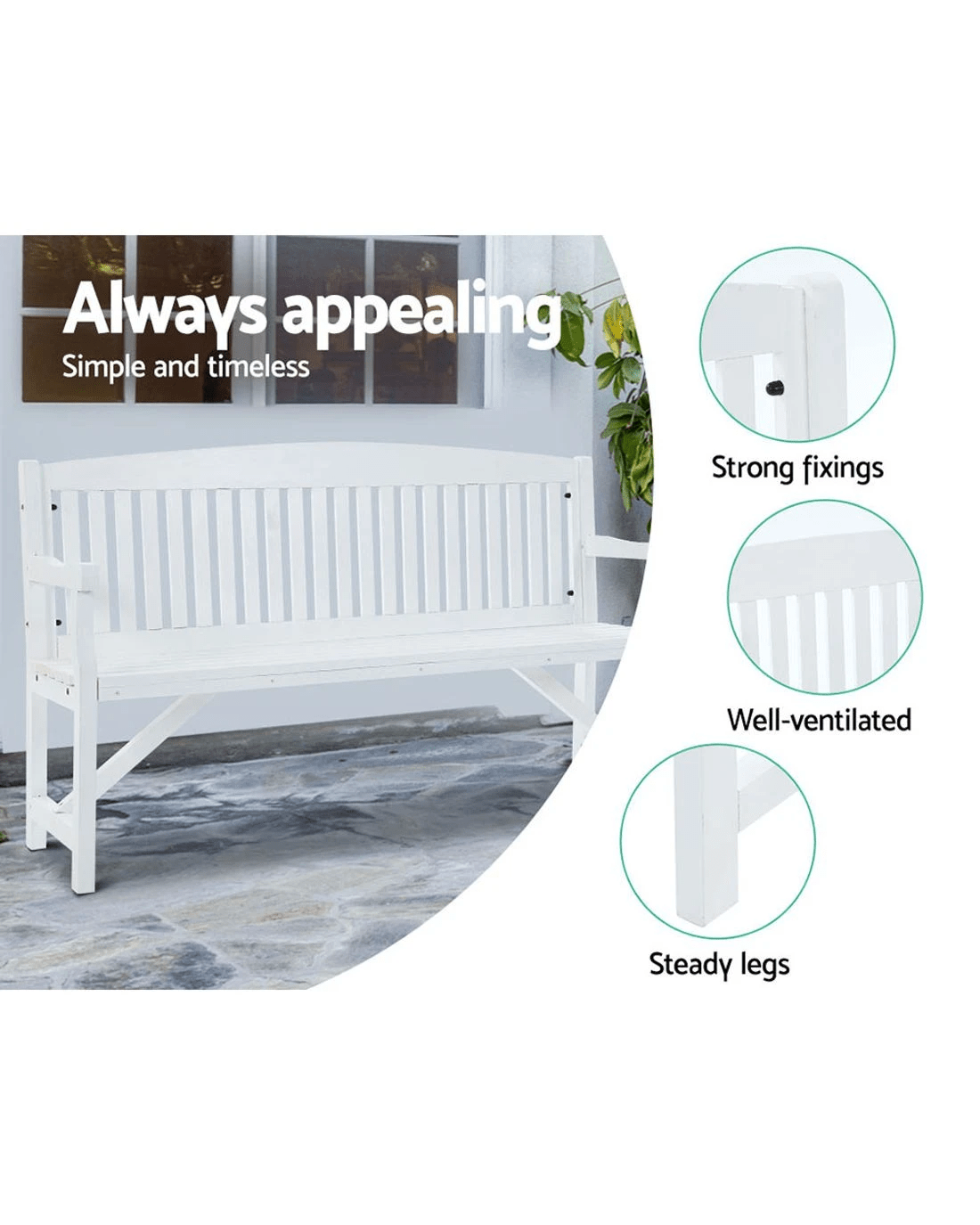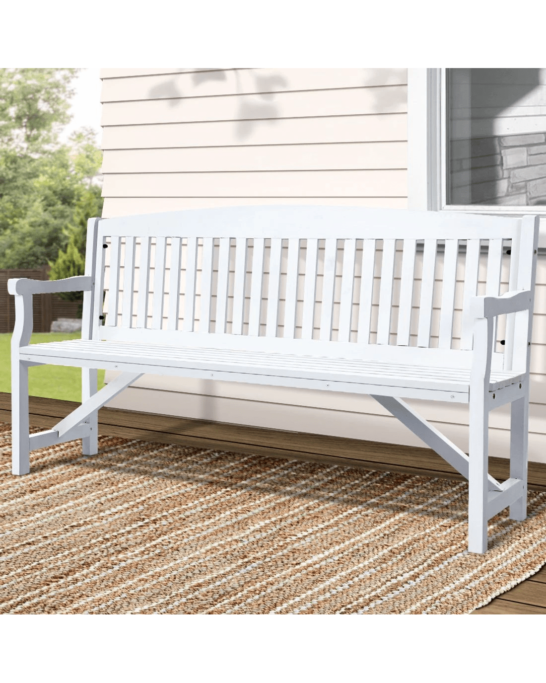 Gardeon 5ft Wooden Garden Bench Three Seat Chair Weather Resistant Fir Wood Sturdy Durable Classic Patio Seating - white
