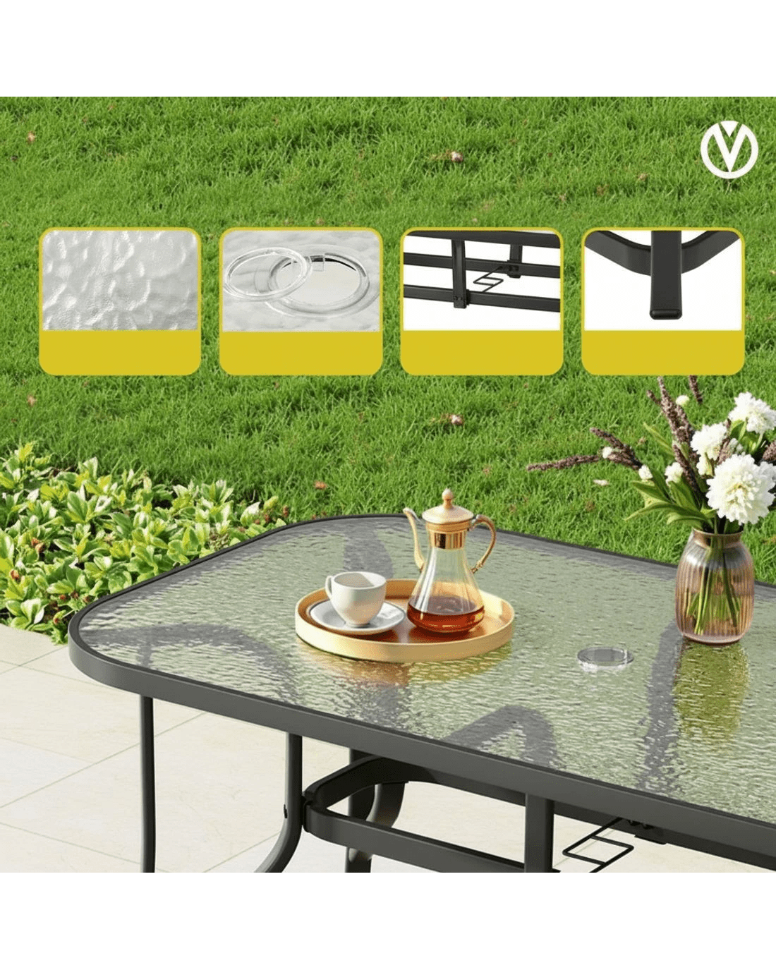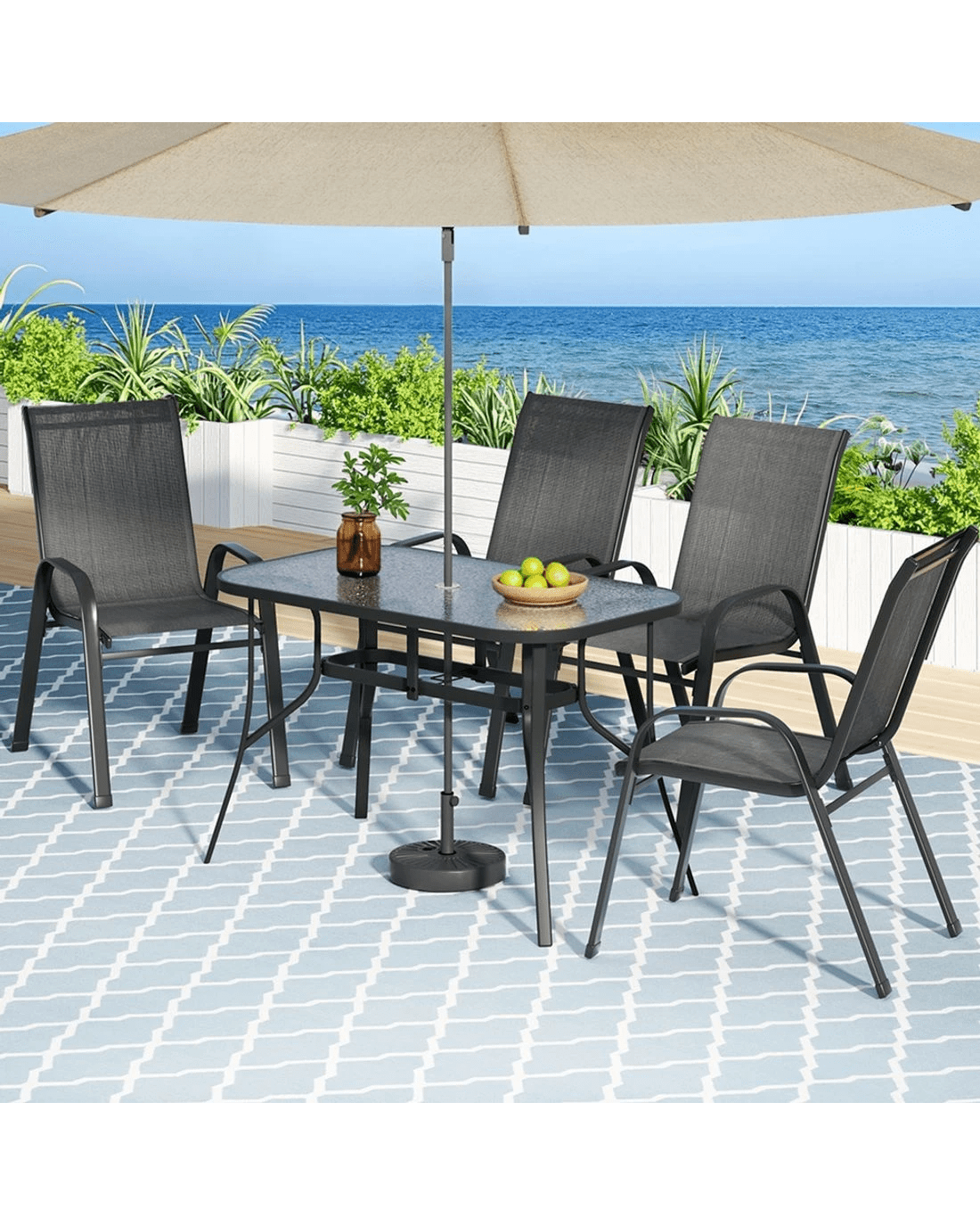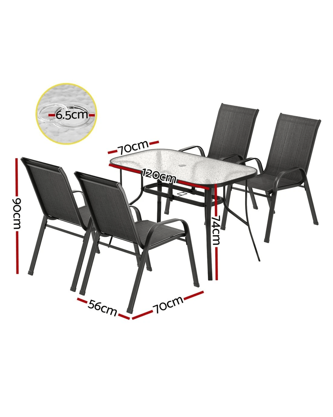 Gardeon 5PC Outdoor Dining Set Table and Chairs - Black