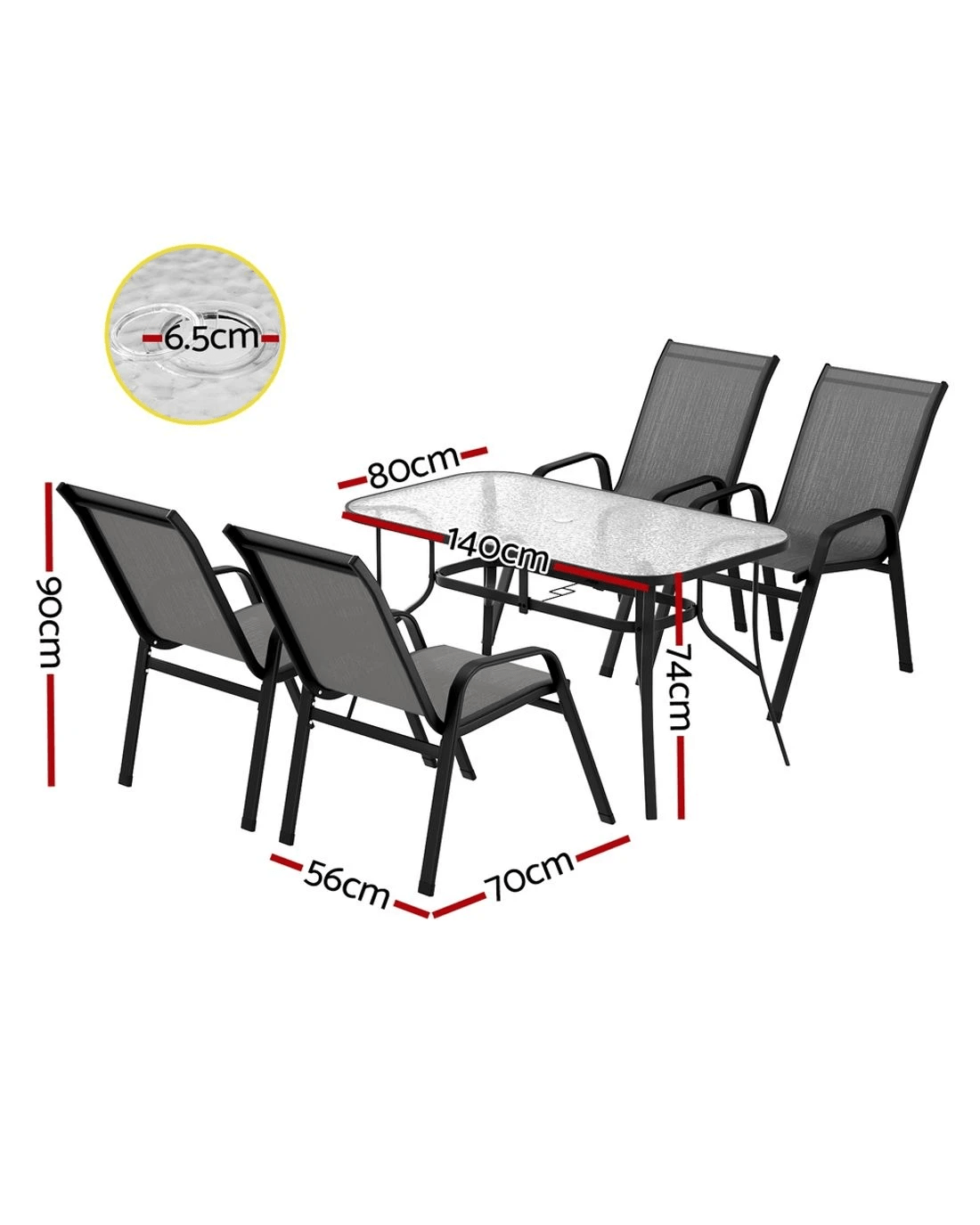 Built-in parasol hole (6.5cm)