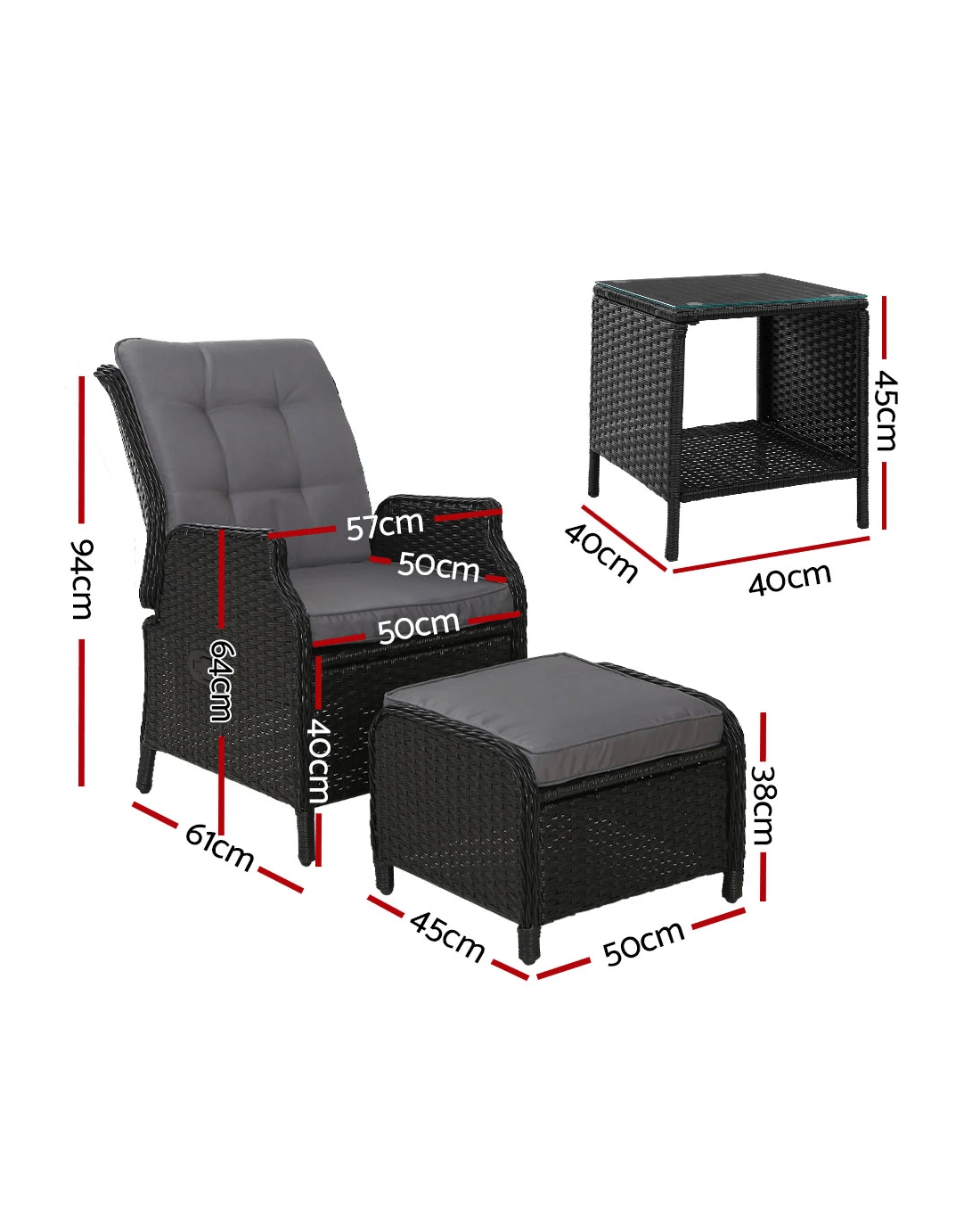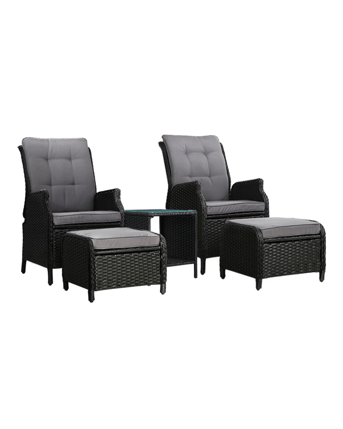 Sold by Aisle SixGardeon 5PC Recliner Chairs Table Sun lounge Wicker Outdoor Furniture Adjustable - Black