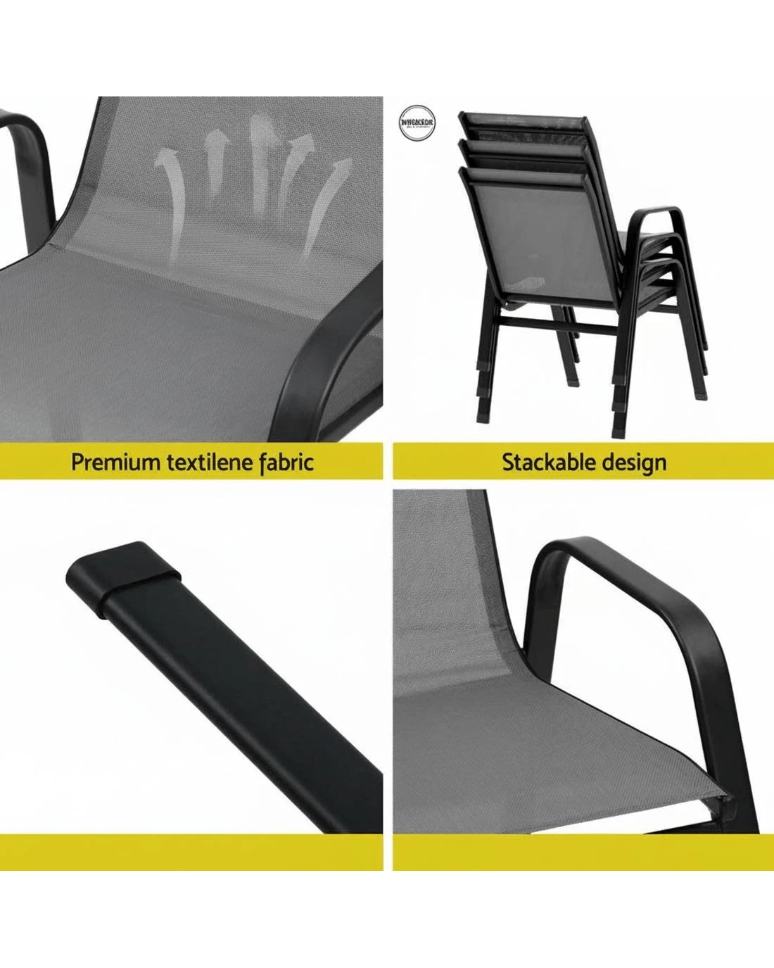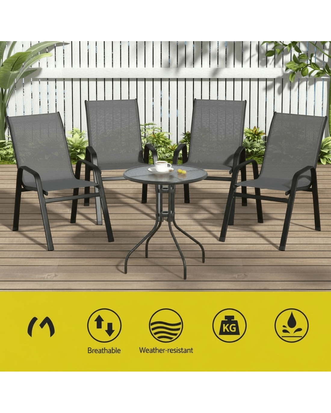 Whether you're hosting an outdoor intimate dinner party or barbeque night for your friends or family, the Gardeon outdoor stackable chair set is perfect to design a gorgeous outdoor setting that will wow your guests. The chairs are stackable, which makes for convenient and easy storage when not required. Designed for years of enjoyment, the chair set boasts classic looks and are made from premium textilene fabric and sturdy metal frame with durable powder coating. The anti-slip feet and good weather-resistance also makes them quite desirable. You can also pair this chair set with our sturdy and beautiful matching table to create a harmonious look.
