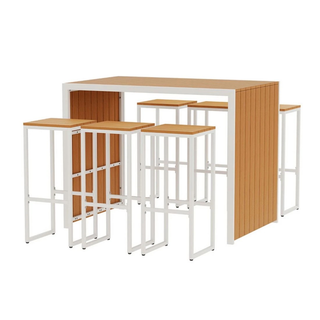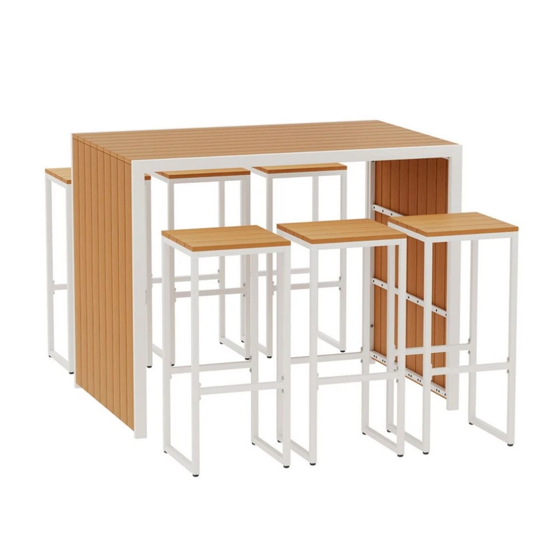 Gardeon 7-Piece Outdoor Bar Set Table Chairs Patio Bistro Set 6 Seater - Brown