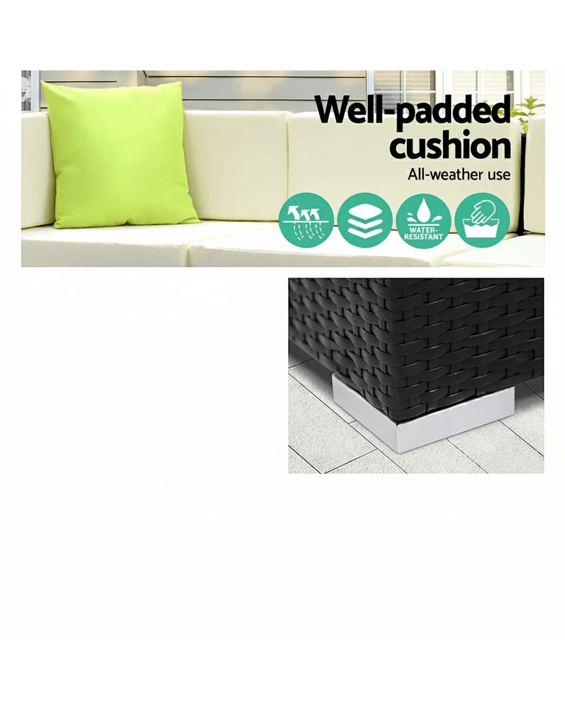 Leisure come easy with our Gardeon Outdoor Furniture Set. Our outdoor set promises luxurious and spacious comfort matched with long-term durability and robust use in any weather condition. With its UV-resistant PE wicker handiwork and heavy-duty aluminium frame, the stylish outdoor set is made to last. The table also comes with a 5mm thick tempered glass top for safety while a corner table (where applicable) adds a handy convenience. Not least, the seat covers can be removed for washing.