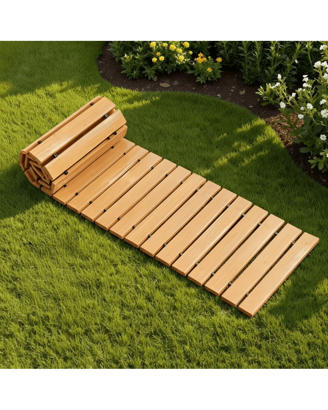 The Gardeon 8FT Cedar Garden Walkway combines rustic charm with practicality. Made from weather-resistant cedar with anti-slip patterns, it adapts to muddy, sandy, or grassy terrain. Steel wire ropes connect planks for flexibility, while 4 included stakes secure it firmly. Roll up for compact storage after use!