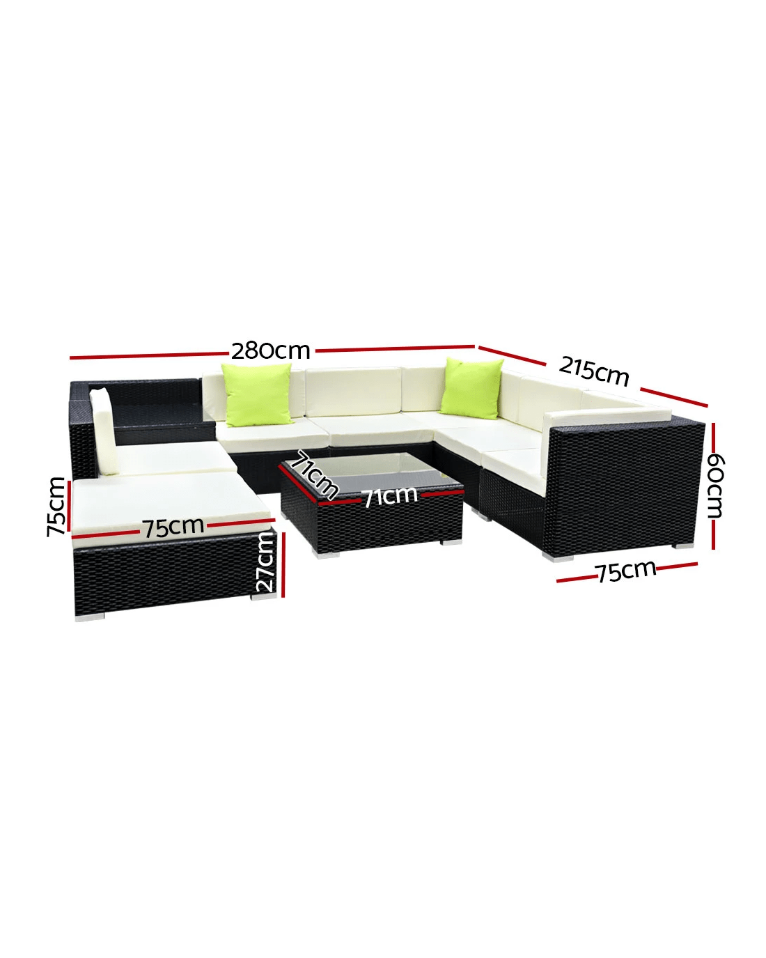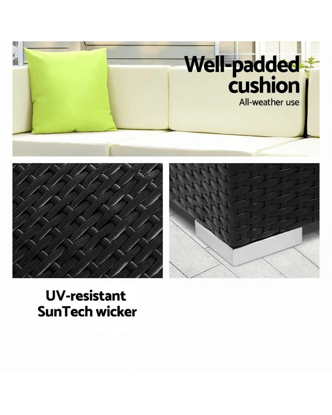 Sold by Aisle SixGardeon 9-Piece Outdoor Sofa Set Wicker Couch Lounge Setting 7 Seater - Black
