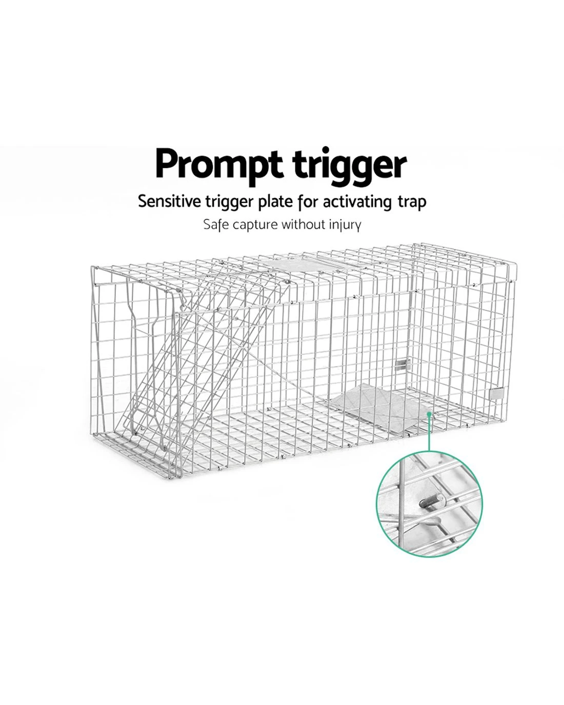 Made from quality rust resistant galvanised iron wire, this humane animal trap cage is built to last for years. Featuring spring loaded door trap with protected handle, automatic locking system that is swift in operation, this cage is designed to ensure safety of both animals and users. Perfect for removing pest animals in backyard and capturing pest alive. Collapsible design and can fold away quickly for easy storage and transportation.